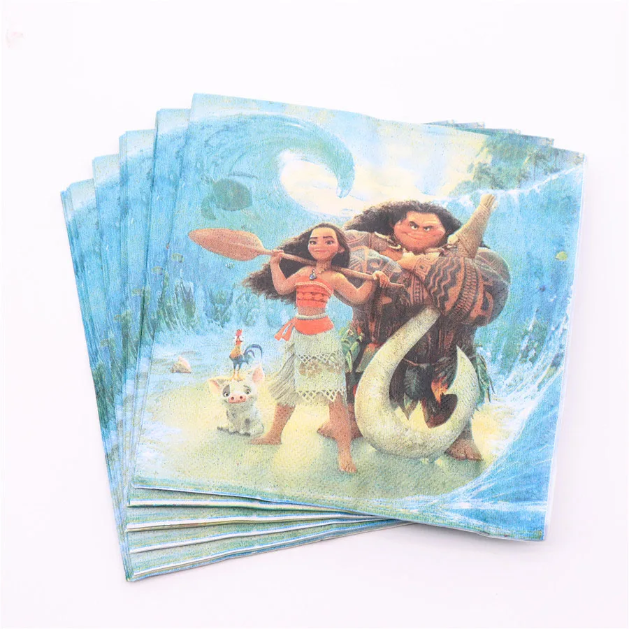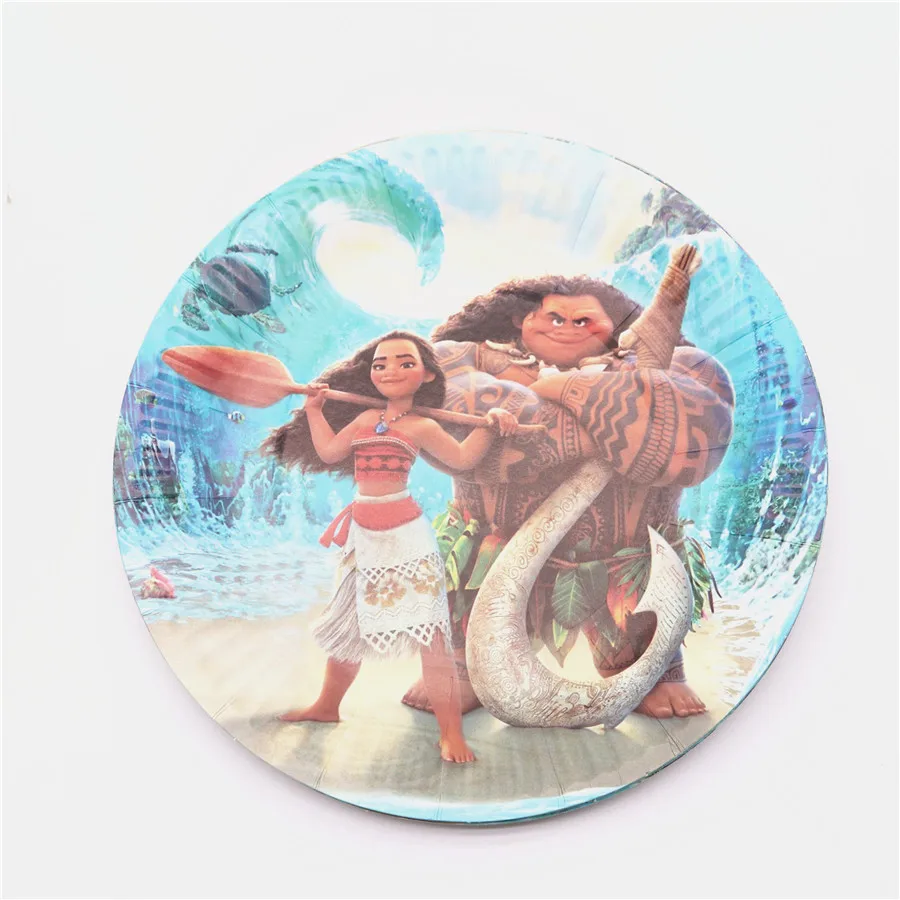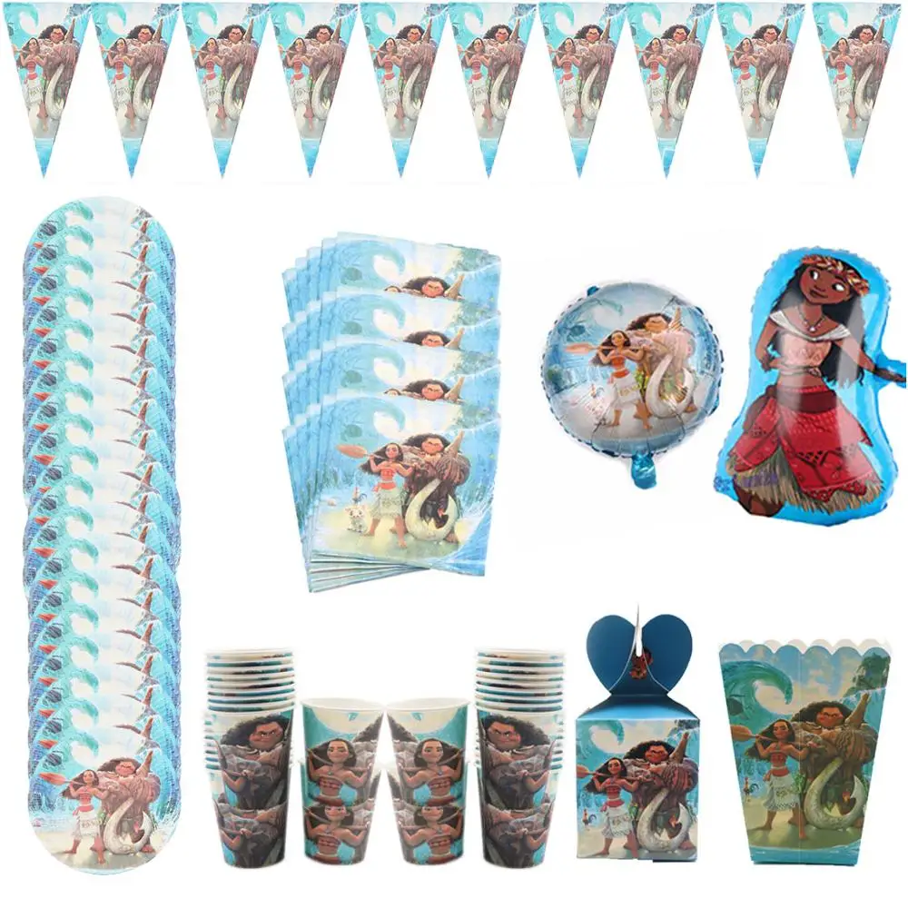 Moana Мультяшные Одноразовые столовые тарелки, салфетки, баннер, коробка для сладостей и попкорна, детские украшения для дня рождения, вечеринки в честь будущей мамы