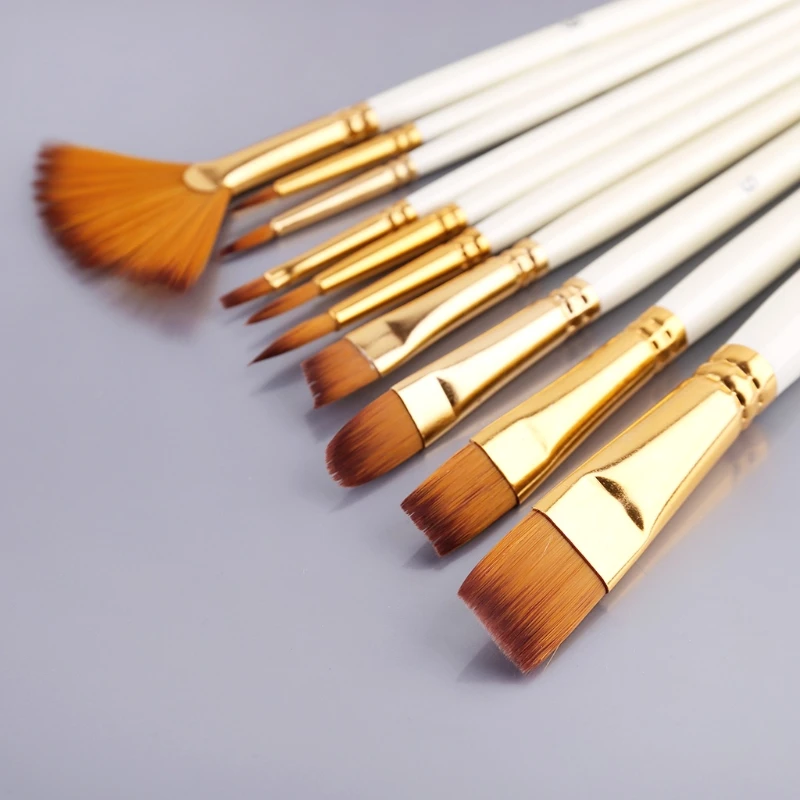 10 шт., нейлоновые кисти для рисования акварелью и деревянной ручкой