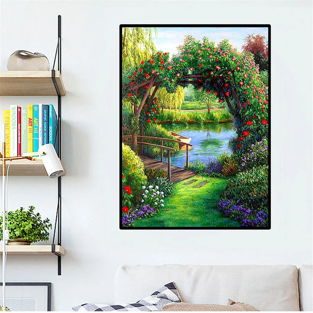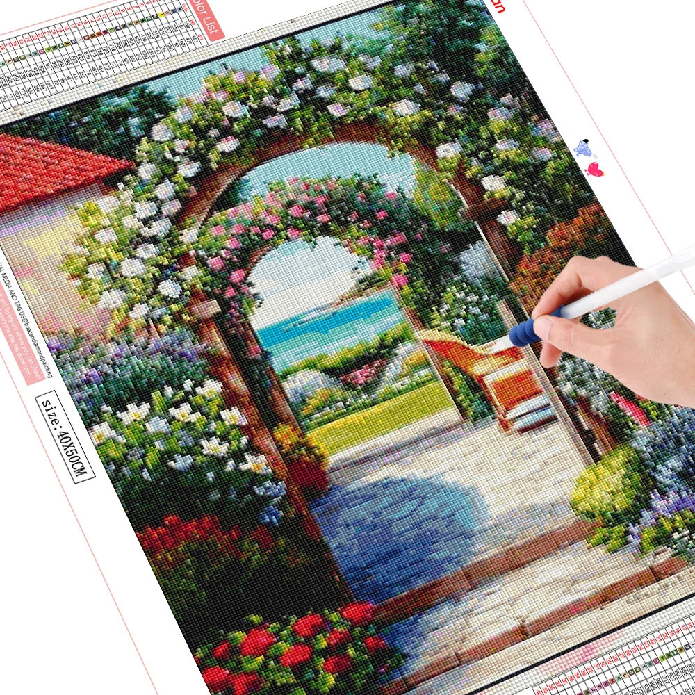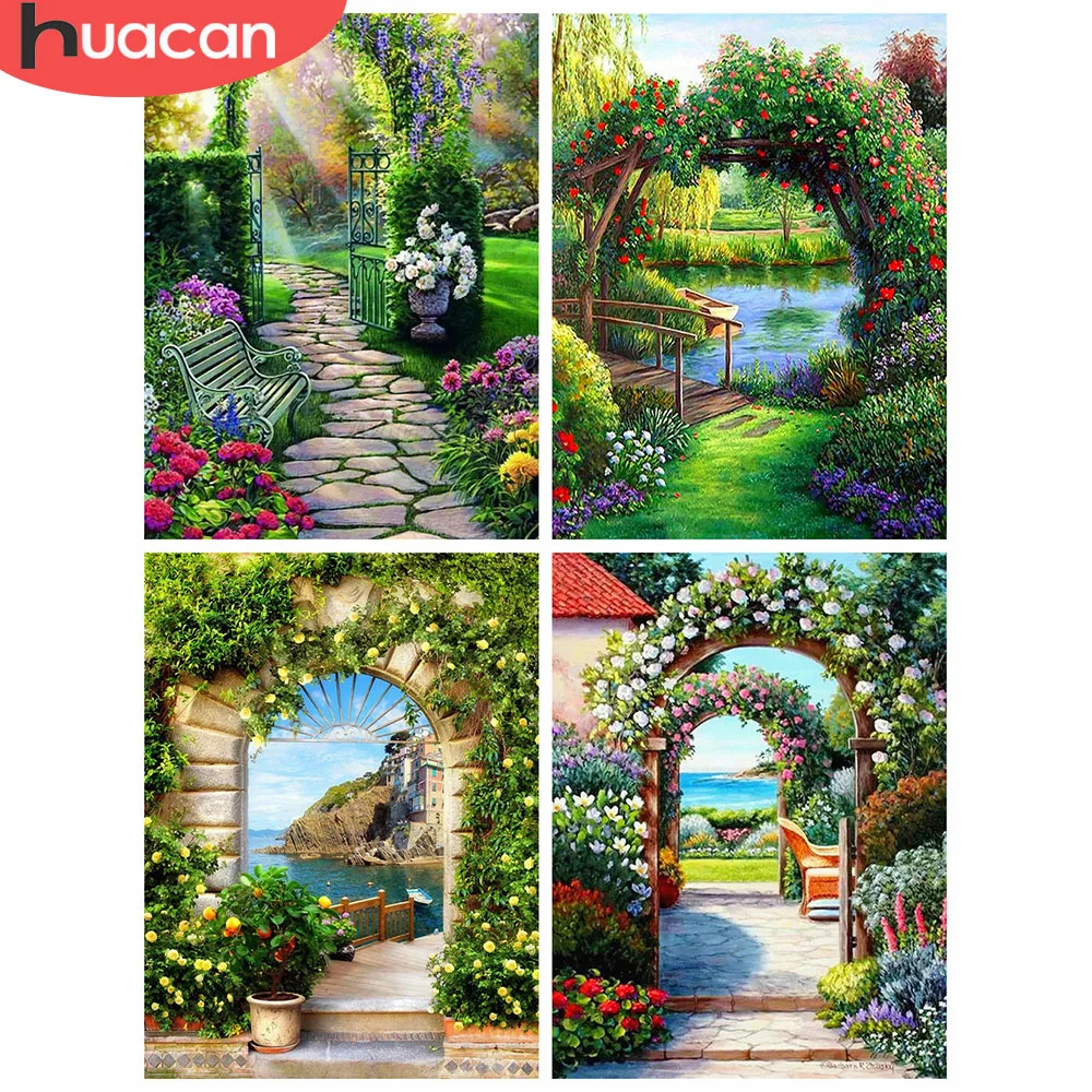 Алмазная живопись HUACAN для творчества, садовая 5D мозаика, картины из страз, алмазная вышивка, дверь, пейзаж, настенное искусство, Набор для творчества
