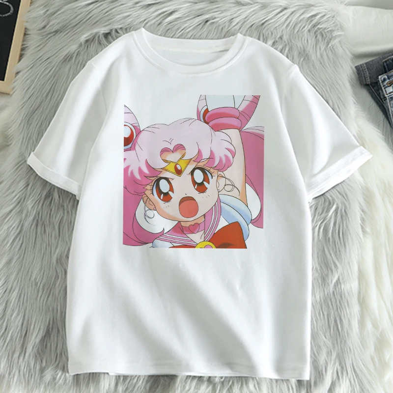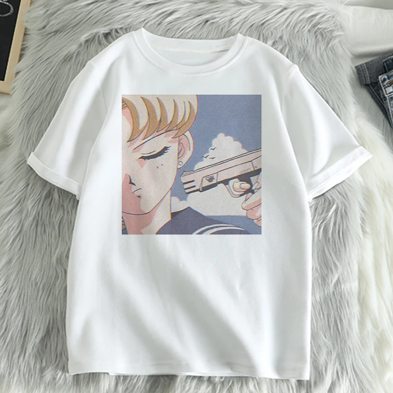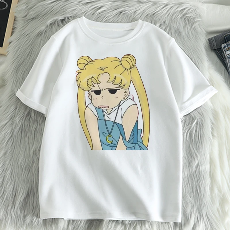 Футболка женская в стиле панк, свободная рубашка в готическом стиле, с принтом Сейлор Мяу, уличная одежда, в стиле Харадзюку, Y2k, на лето