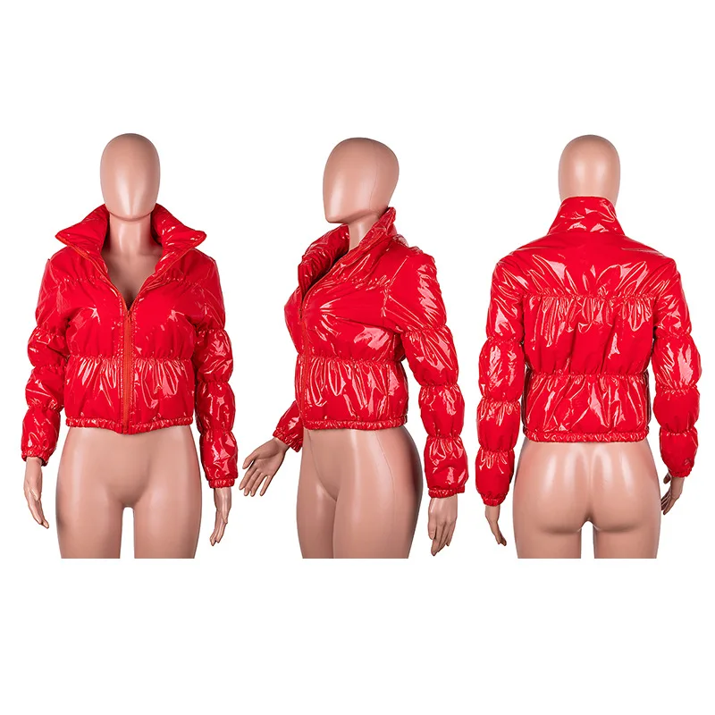 Зимняя теплая парка, повседневная куртка из искусственной кожи с длинным рукавом, на молнии, 2020, женская одежда, толстая короткая стеганая куртка, пальто