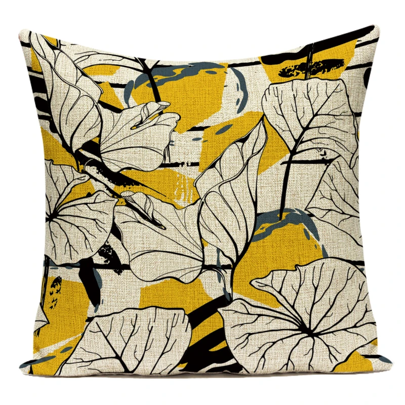 Серая льняная наволочка с тропическими листьями, Весенняя Подушка с...