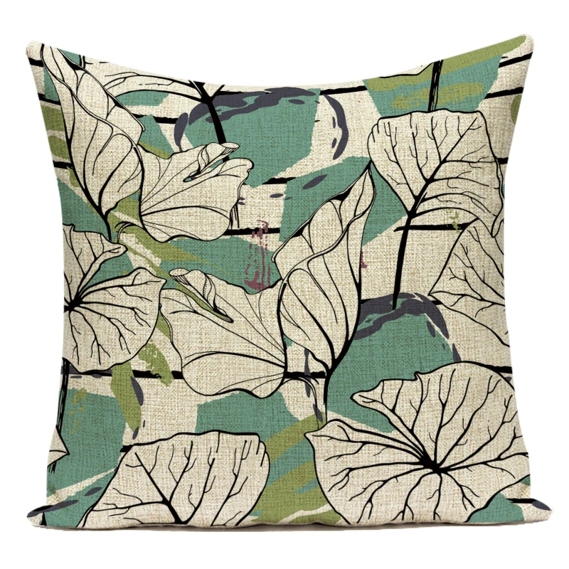 Декоративные диванные подушки Чехол из полиэстера зеленые лист троп...