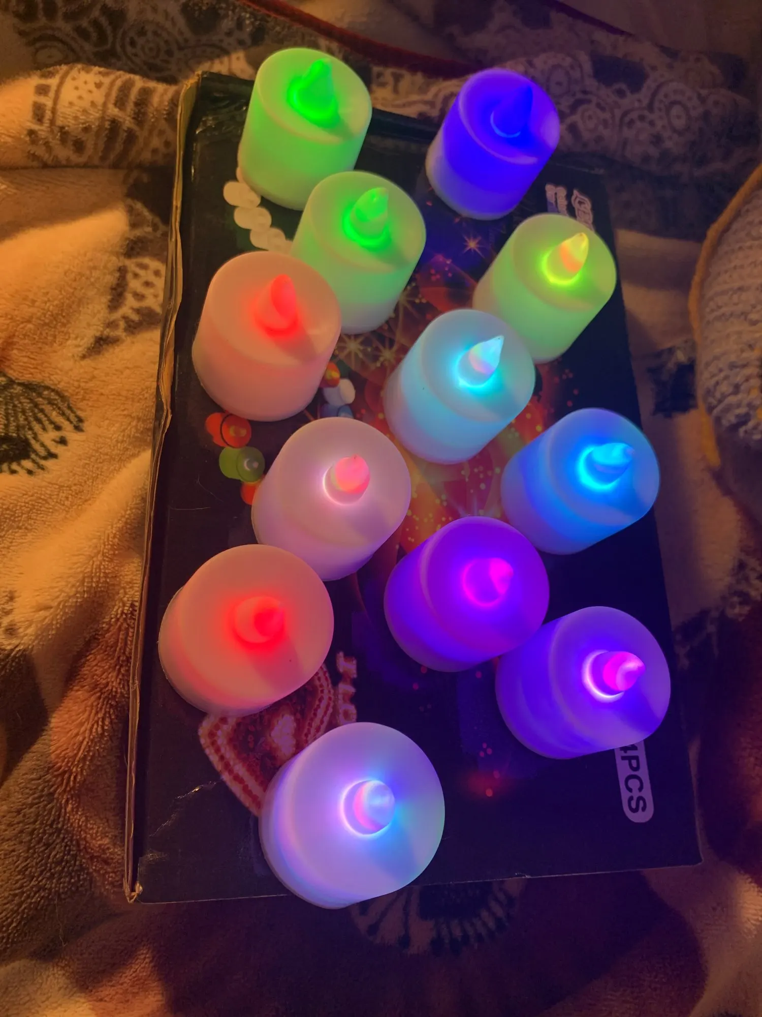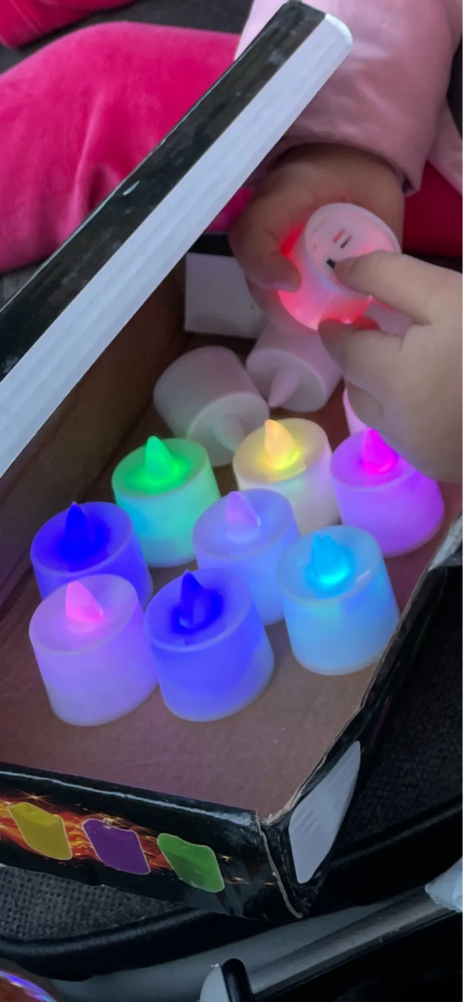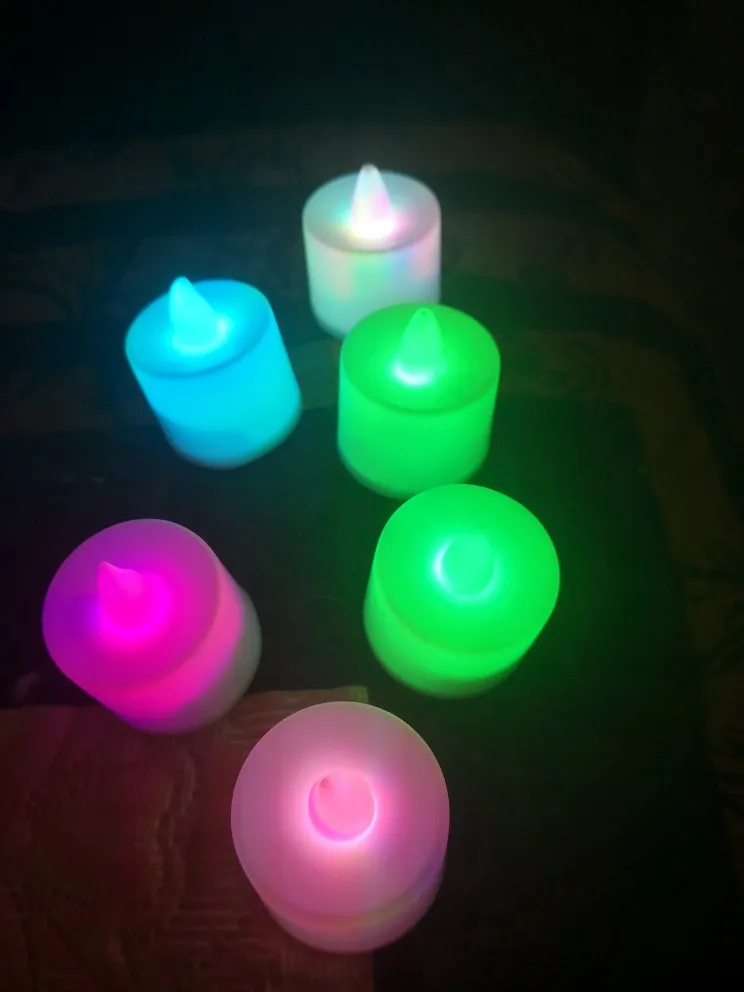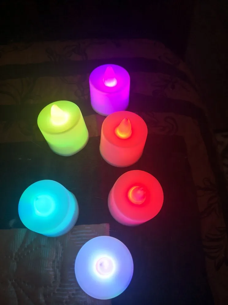 Думала что каждая свеча горит своим цветом, оказалось что все 6 с меняющимся цветом. В остальном отличный товар, сразу с батарейками, доставка быстрая