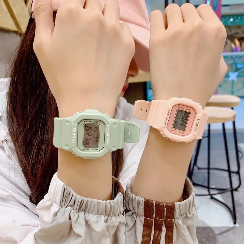 Часы наручные цифровые унисекс, модные кварцевые Многофункциональные СВЕТОДИОДНЫЕ, с силиконовым ремешком, розовые зеленые