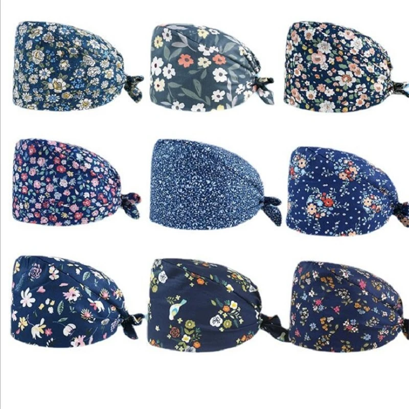Шапка для медсестры с цветочным узором, регулируемая шапка с разным...