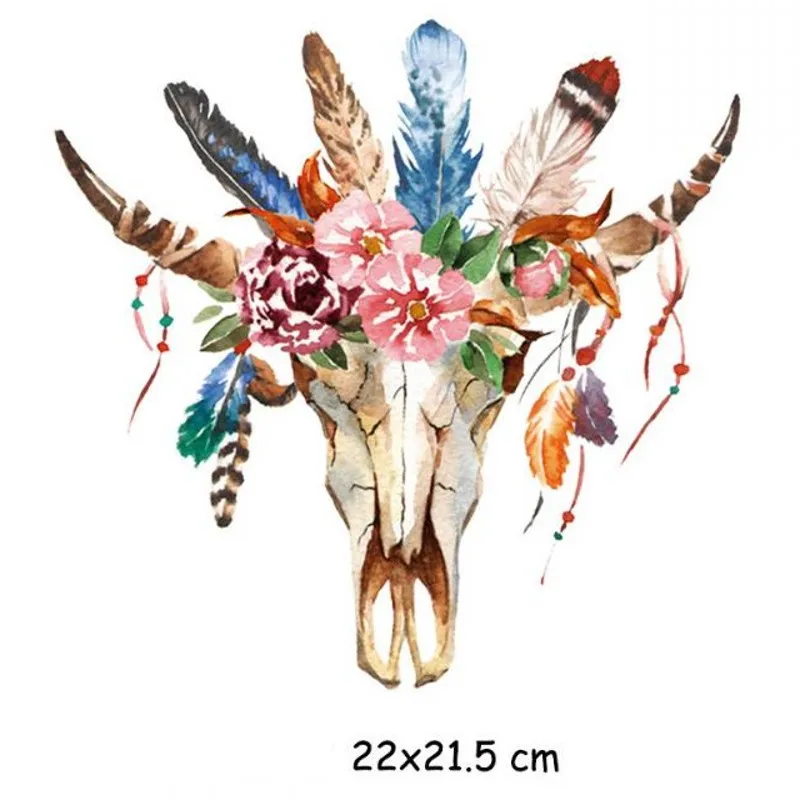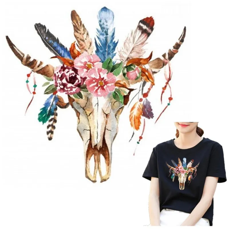 Индийские красочные нашивки с головой быка для самостоятельного нанесения тепла, термонаклейки для одежды, футболок, декоративная печать