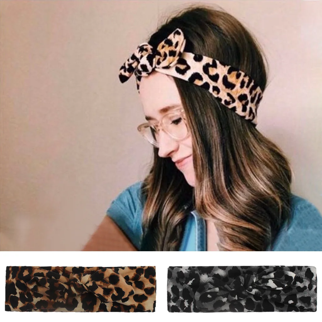 Новинка 1 шт. леопардовой раскраски из меха пони эластичная повязка на голову с бантом узел для взрослых кроличьи уши ленты для волос модные головные уборы Симпатичные Головные уборы подарки