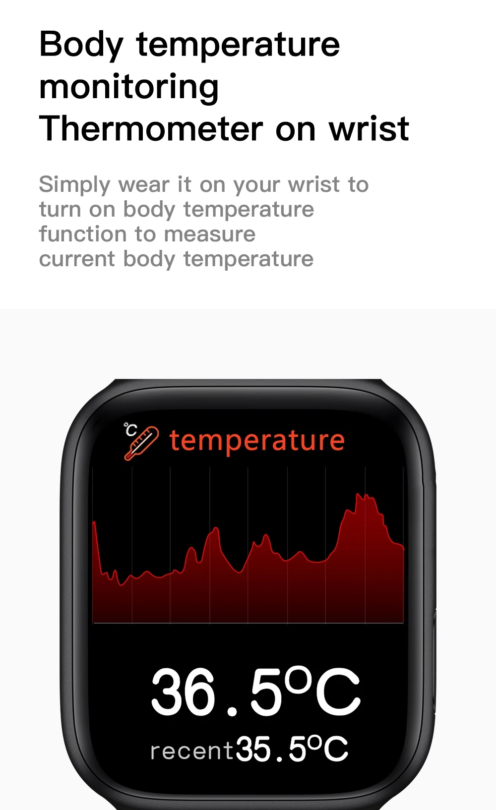 Просто наденьте его на запястье, чтобы включить функцию температуры тела для измерения текущей температуры тела