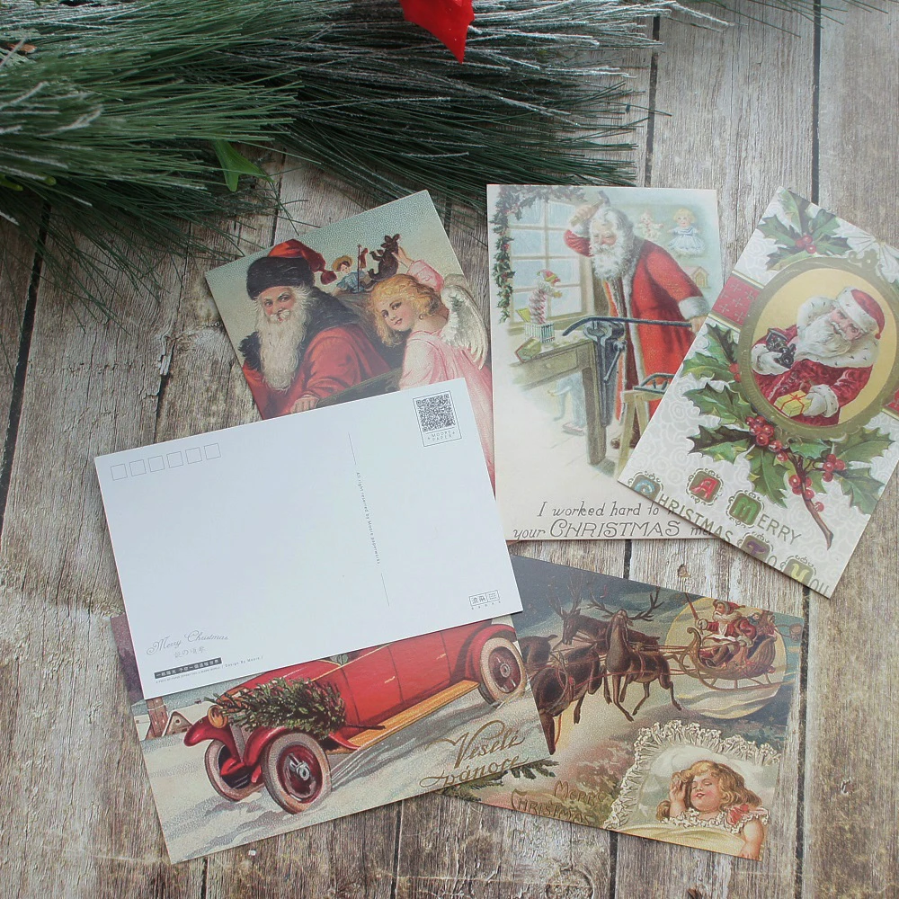 10 шт. Ретро Рождество живописи тушью Санта карты как Скрапбукинг вечерние приглашение для художественного оформления ногтей, ручная работа подарок открытка с сообщением Почтовые открытки