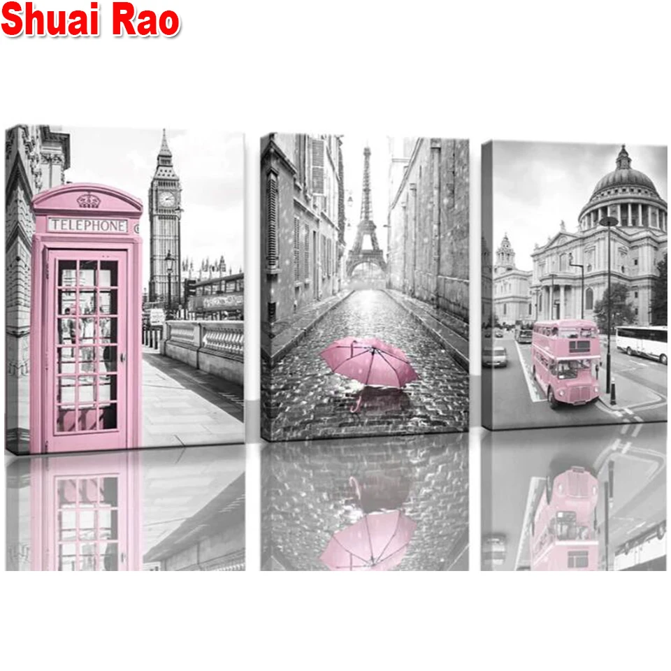 Набор из 3 предметов, алмазная вышивка с мотивом автобус и Зонт, мозаика, Триптих, 5d картина, пейзаж, искусство, украшение для дома