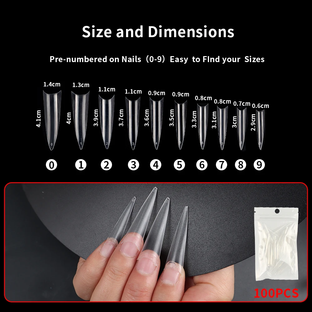 Система удлинения сверхдлинных острых ногтей, скульптурный прозрачный тонкий гроб, маникюр, акриловые накладные ногти
