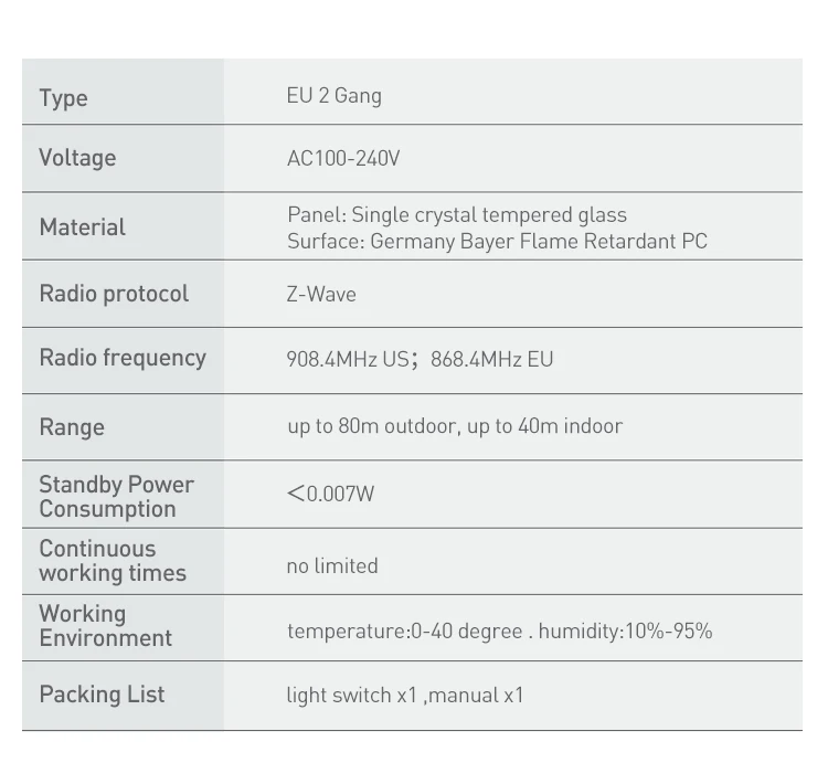 Ключевые особенности: 1. Пульт дистанционного управления-позволяет контролировать включение/выключение света в любом месте. 2. Передовые материалы-модный дизайн 1 мм панель из закаленного стекла. 3. Сенсорный смарт-чип-набор обеспечивает немедленную реакцию. 4. Защита от перегрузки-автоматически отключите питание. 5. Интеллектуальное распознавание-Автоматическое Сопряжение. 6. Постоянная память-запоминает последний Статус перед отключением питания. 7. Энергосбережение-вы всегда можете выключить свет с помощью приложения 8. Состояние синхронизации-состояние устройства в режиме реального времени. 9. Светодиодный дисплей в ночное время-низкий светильник, легко включается в ночное время. 10. Установите расписание синхронизации-заданные таймеры автоматически Включите светильник в вашей комнате. 11. Размер продукта (Д x Ш x В):86x86x34,2 мм 12. Нужны живые и нейтральные провода