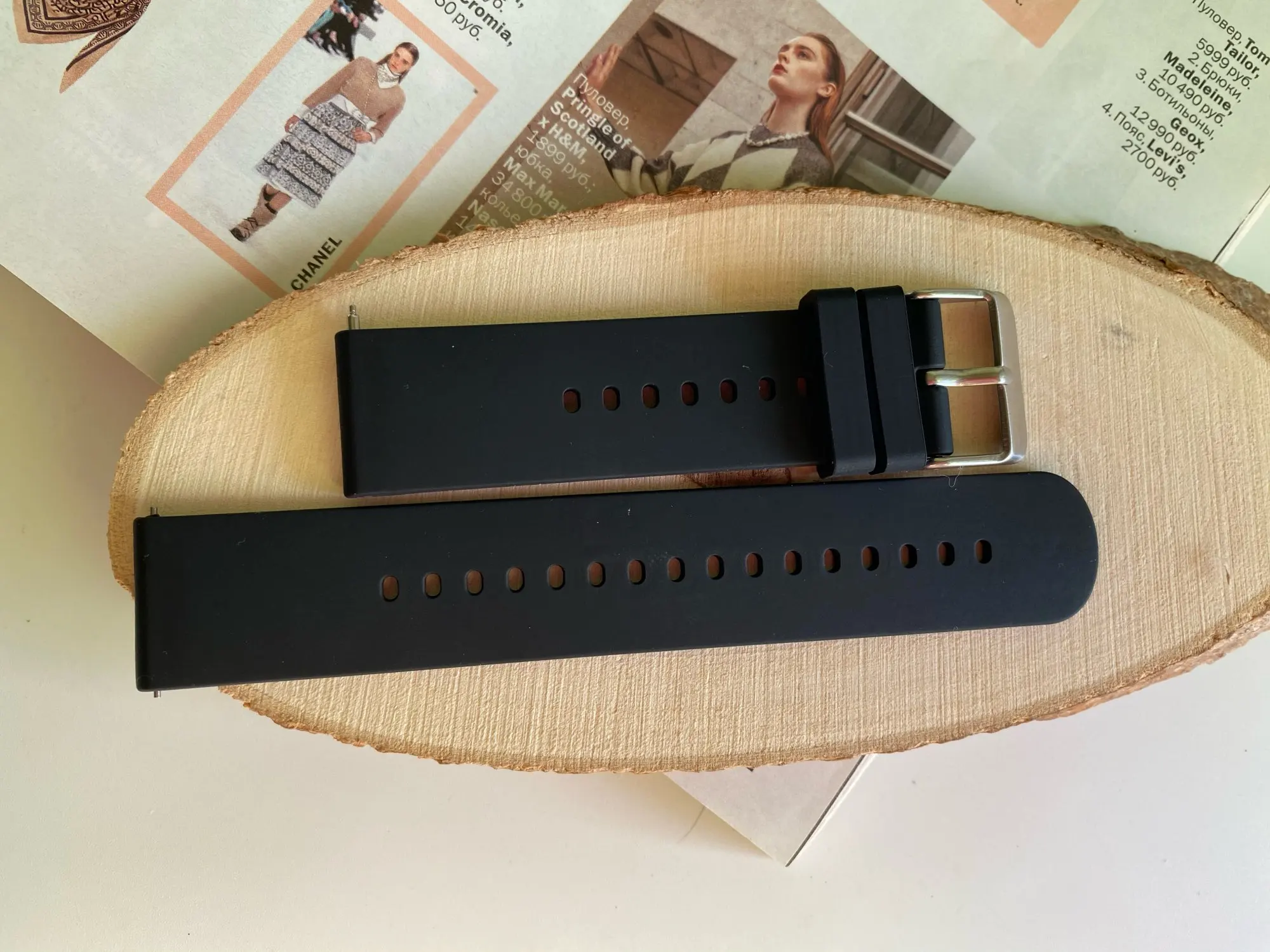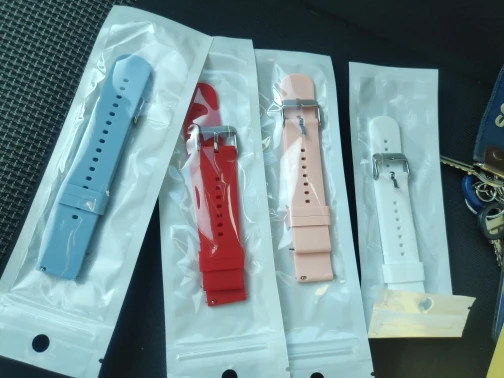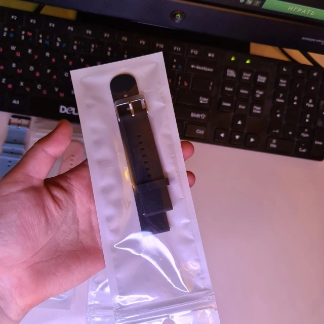 Заказала 2 браслета, для себя и для папы. Посылка пришла примерно за месяц, полностью отслеживалась. Каждый комплект пришёл в отдельном зип-пакетике. Материал силикон, очень приятный на ощупь, мягкий, ничем не отличается от моего, на часы RYKKZ P2 и от папиного тоже. И вообще они подходят для впечатляющего списка смартов, главное что бы ремешок ваших часов был 20 мм. Ремешок очень легко и удобно менять, без инструментов, благодаря штифту. При этом ремешок держится крепко.