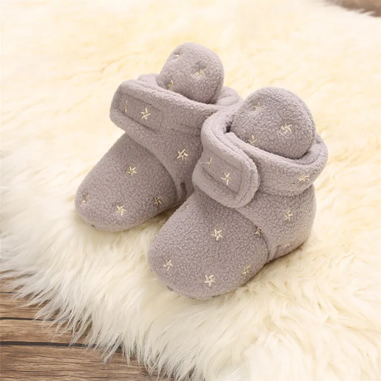 Новые зимние Утепленные ботинки для маленьких мальчиков и девочек от 6 до 15 месяцев; Милые повседневные Мягкие ботинки с принтом в виде звезд для маленьких детей; Обувь для начинающих