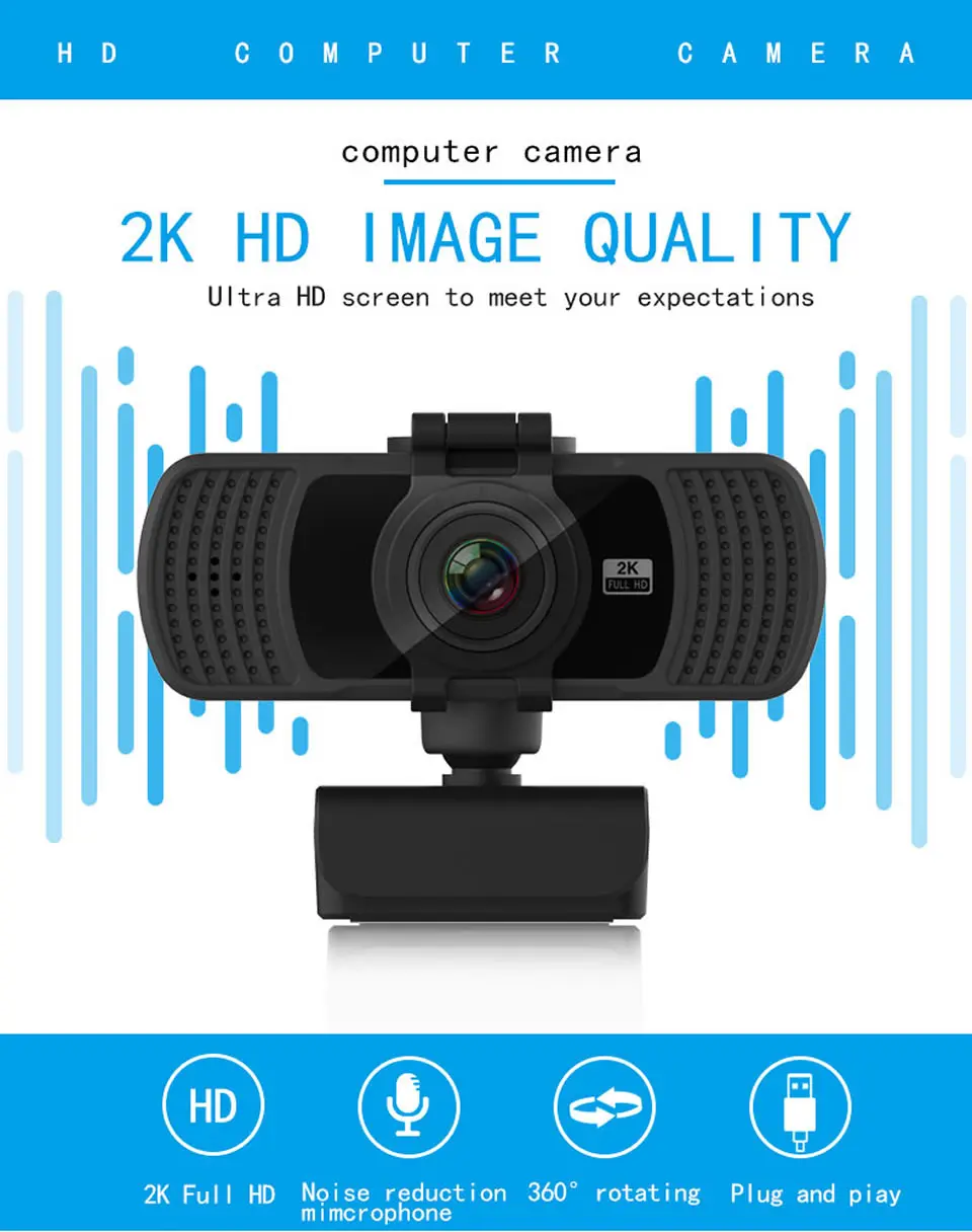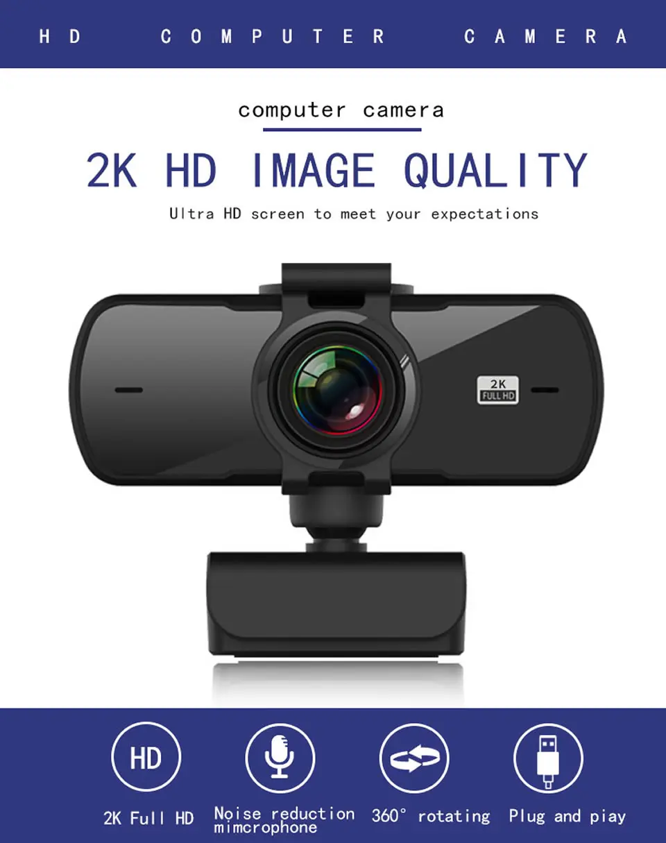 2K HD Компьютерная камера, веб-чат в прямом эфире, Бесплатный диск, 4 миллиона пикселей Встроенный микрофон