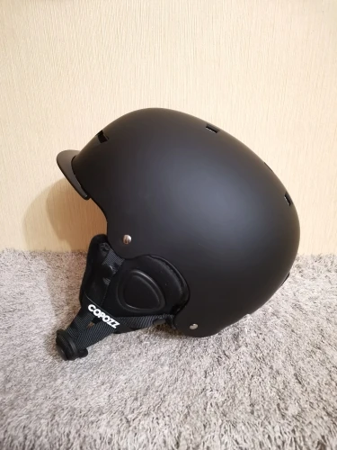 отличный шлем. козырек съемный, ушки съёмные как и внутренняя утепленная часть, т.е. шлем можно из зимнего превратить в летний и использовать для катания на велосипеде, например. ремешок под подбородком регулируется, ширина по обхвату головы тоже регулируется