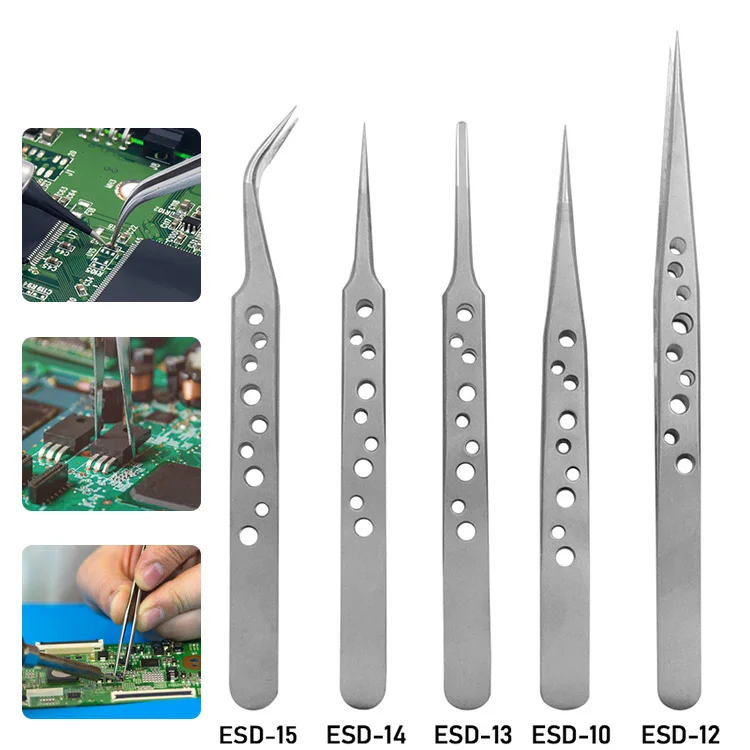 Электронный промышленный пинцет, точные плоскогубцы из нержавеющей стали с антистатическим изогнутым прямым наконечником, набор ручных инструментов для телефона repa