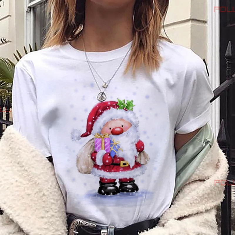 Harajuku с коротким рукавом Футболка женская новый год футболки с р...