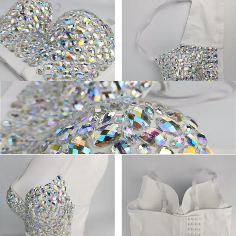 Женский сексуальный цветной бюстье Стразы AB, короткий топ, бюстгальтер пуш-ап на тонких бретелях, блестящий клубвечерние вечерний корсет, бюстгальтер, жилет