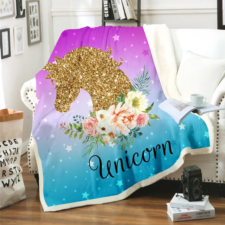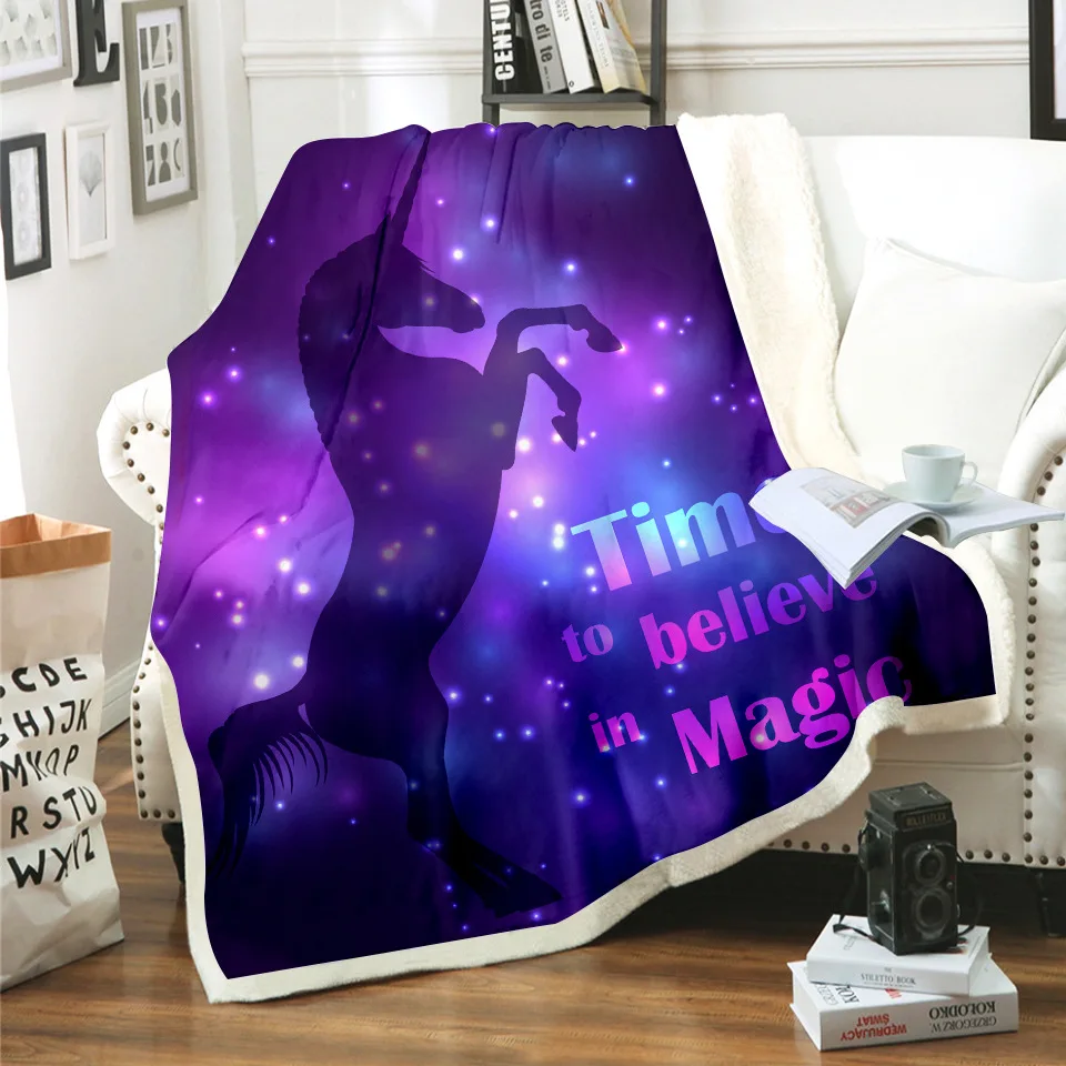 Объемное вязаное одеяло с 3D Цифровым принтом в виде звездного единорога, зимнее фланелевое одеяло, удобный капюшон