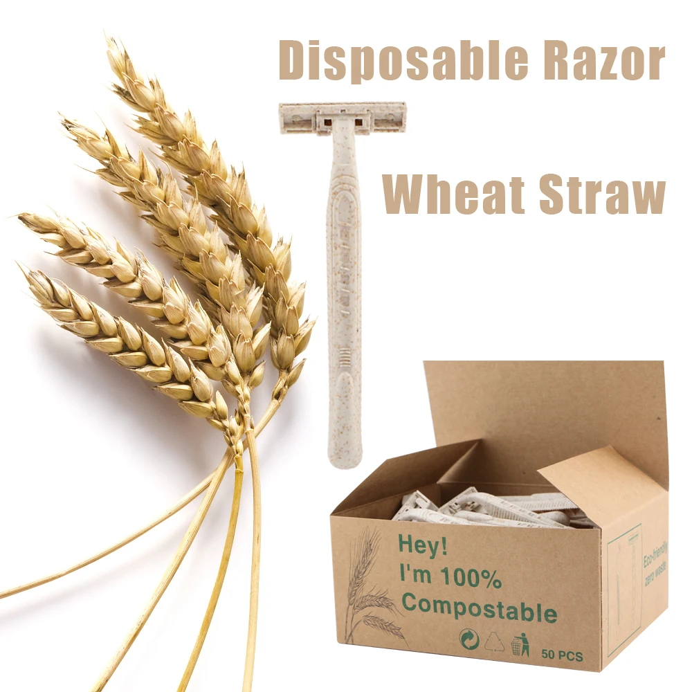 50100 шт экологически чистая ручная бритва Пшеничная солома одноразовая бритва биоразлагаемый материал двухслойные лезвия бритва