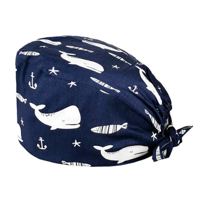 Шапки-крабы с принтом, хлопковые эластичные шапки для салона красоты, рабочие шапки для лаборатории, мужские и женские скрабы для ухода за домашними животными, шапки, обвязки, оптовая продажа