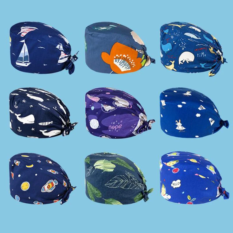 Скраб шляпы печать хлопок эластичный салон красоты работа шапки лабораторные рабочие шапки для мужчин и женщин уход за домашними животными скрабы шапки Tieback оптовая продажа