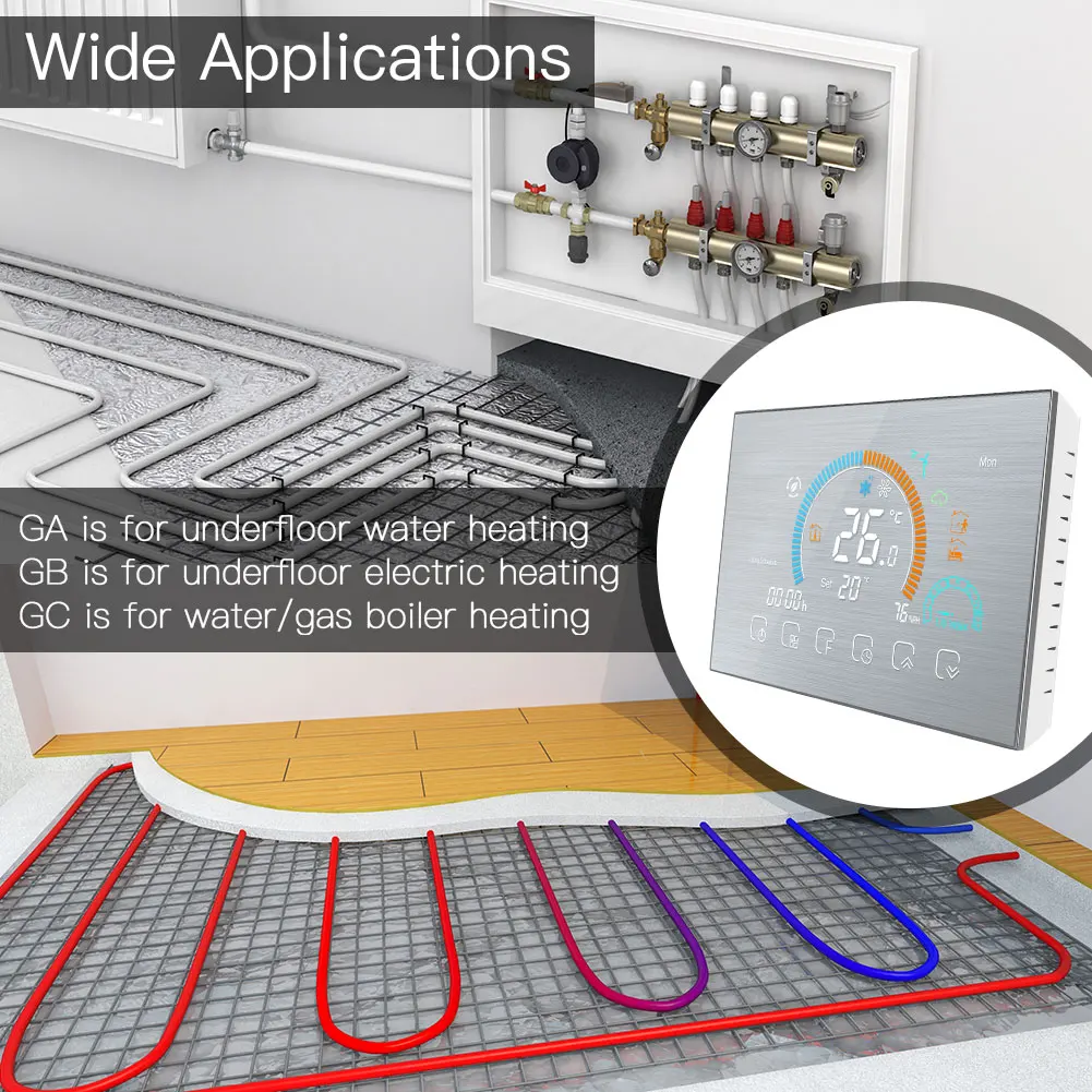 Wi-Fi Новый металлический матовый нагревательный Термостат Программируемый Регулятор температуры в помещении для воды/электрического подогрева пола воды/газового котла Метеостанция влажности и температуры Tuya/Smart Life APP Беспроводное управление Alexa/Google Home Голосовое управлениеОт MoesHouse