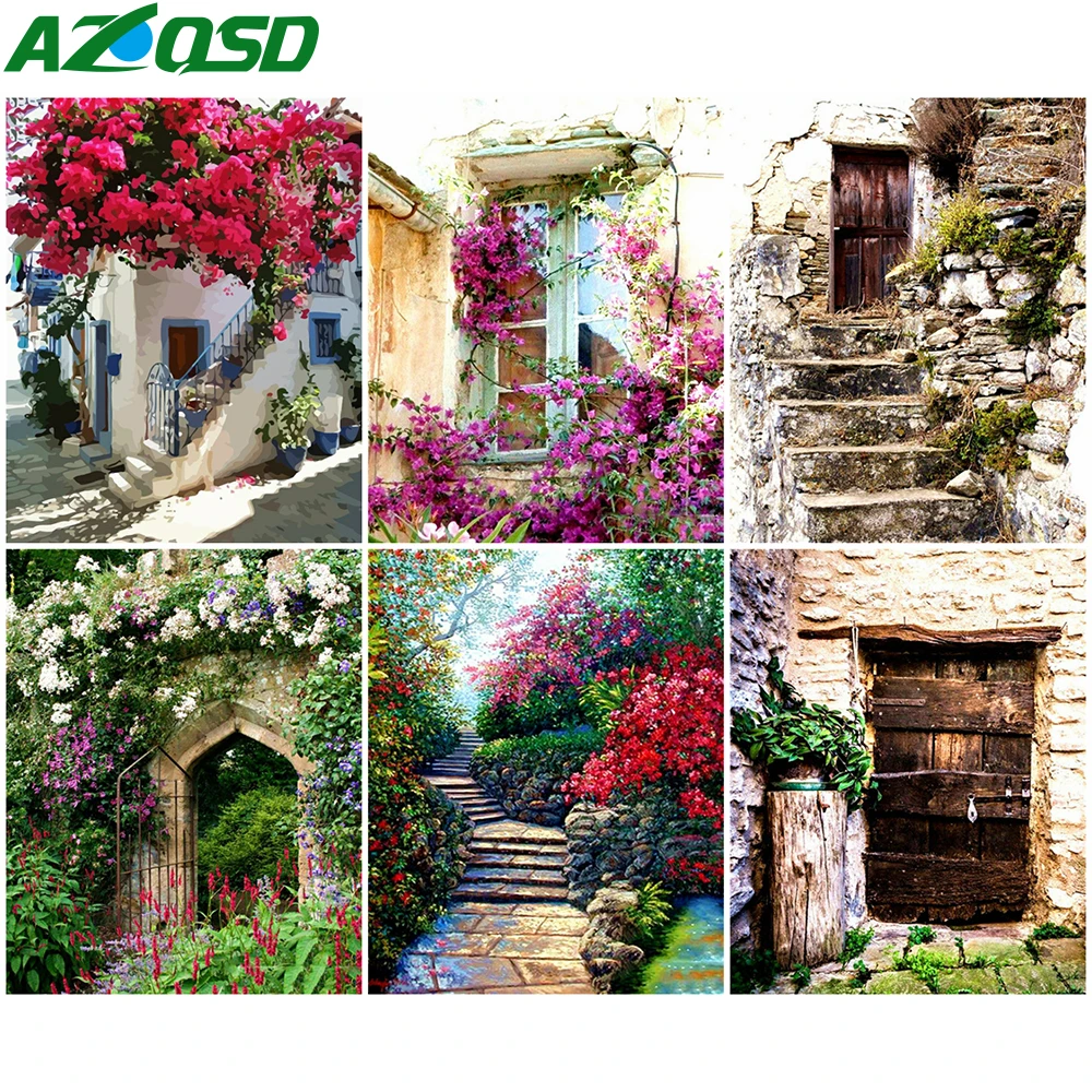 Картина AZQSD по номерам, наборы холстов, пейзаж, украшение для дома, сделай сам, Раскрашивание по номерам, для двери, спальни, Настенные рисунки