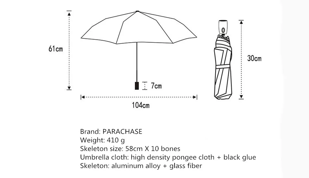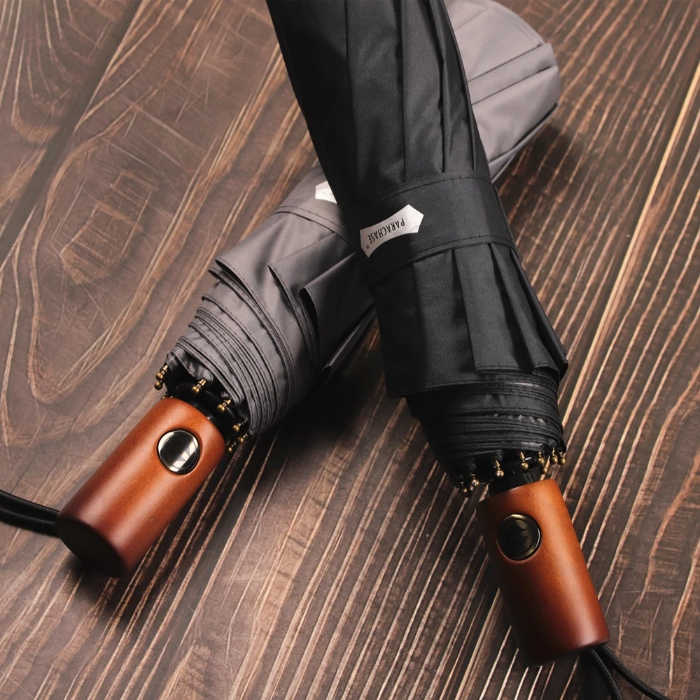 PARACHASE 3 складной 10 ребер солнцезащитный водонепроницаемый алюминий и стекловолокно полностью автоматическое черное покрытие для мужчин на открытом воздухе классический