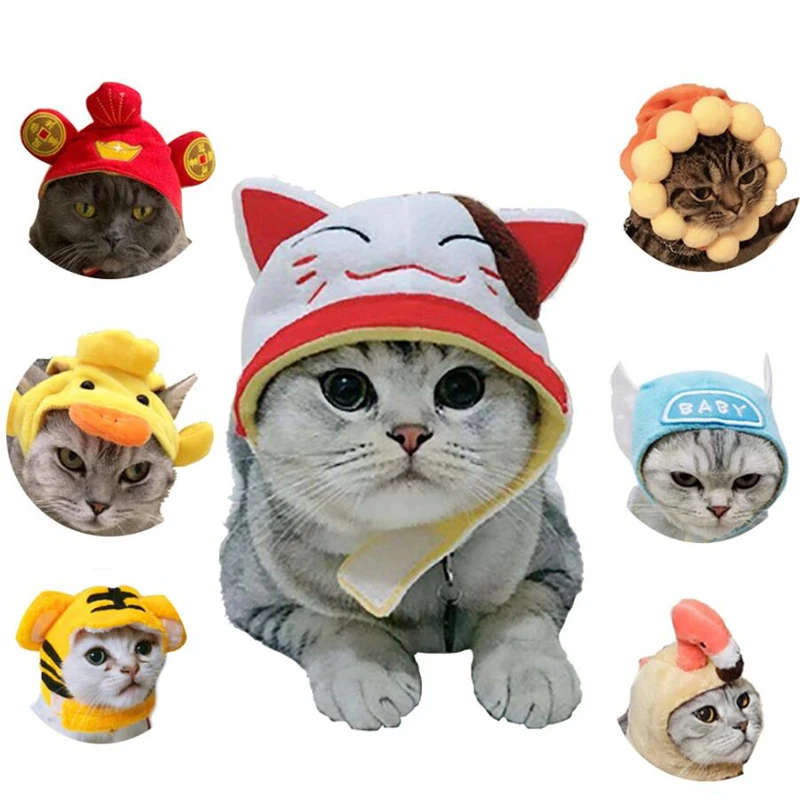 11 видов стилей, модные милые шляпы в виде кошек, кавайные головные уборы для вечеринок, украшения, регулируемые аксессуары для косплея для маленьких собак
