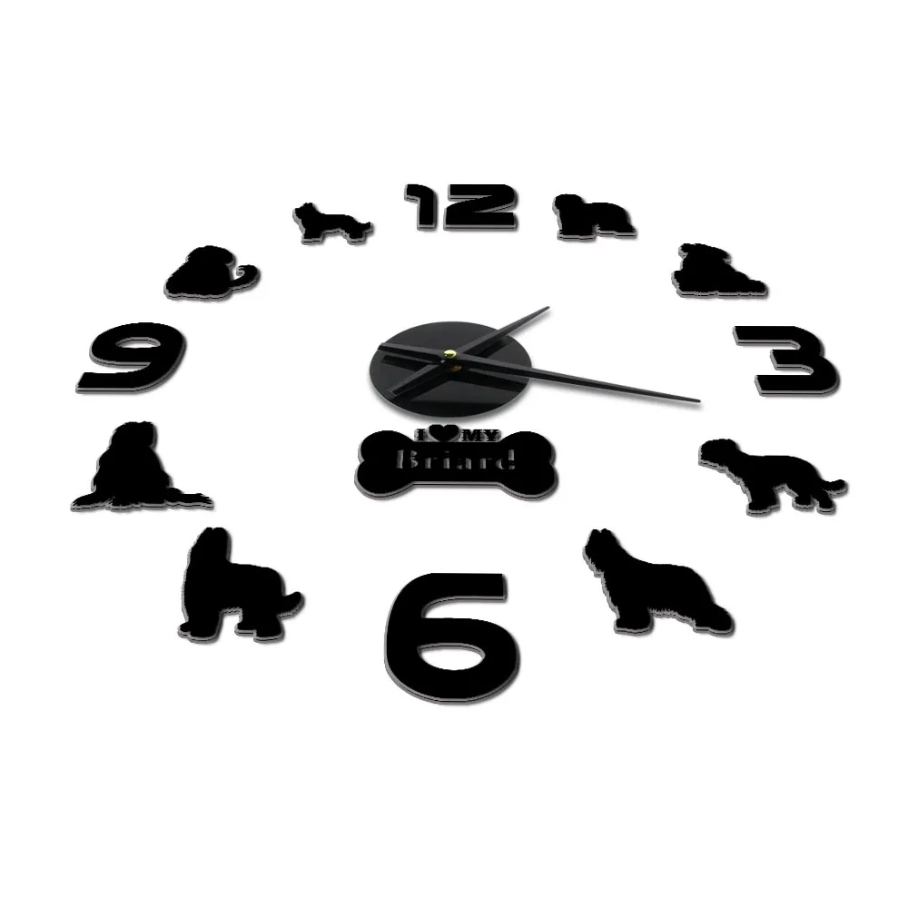 Настенные часы с изображением собаки бриарда, современный дизайн, большие часы Бергера бриарда, самоклеящиеся настенные наклейки