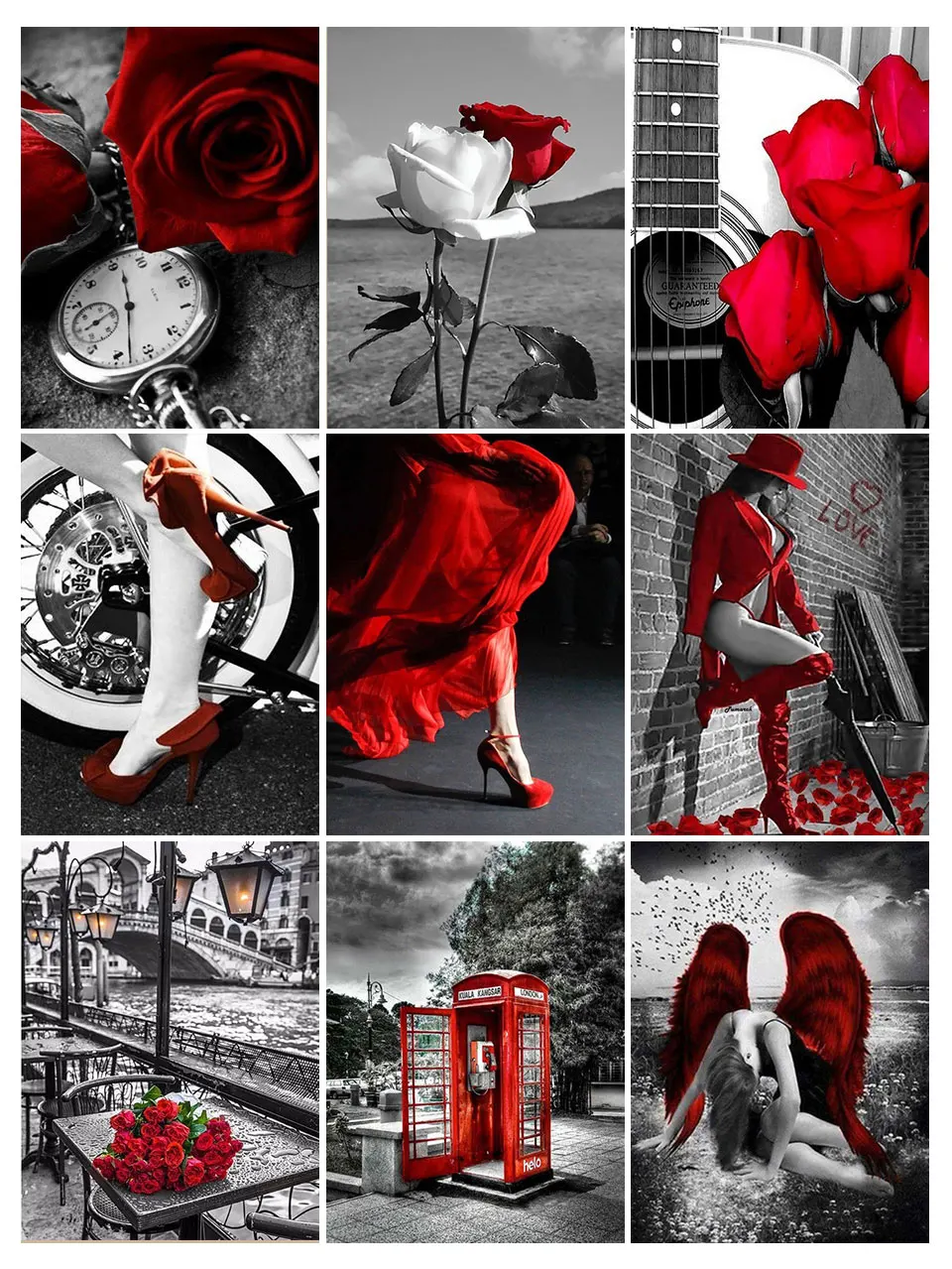 Пейзаж 5D алмазная живопись сделай сам полный квадратный черный и красный бисер вышивка распродажа мозаика Искусство розы Вышивка крестиком домашний декор