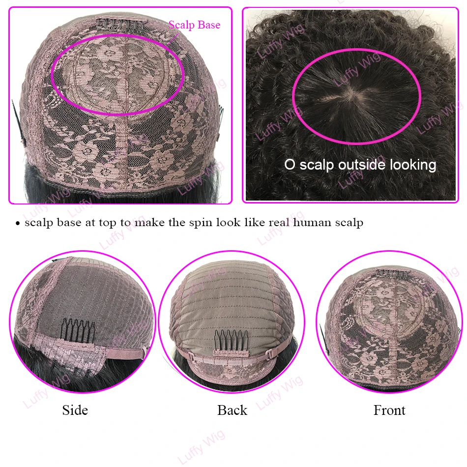 Парик Luffywig женский из кудрявых волос без клея, 200 плотность