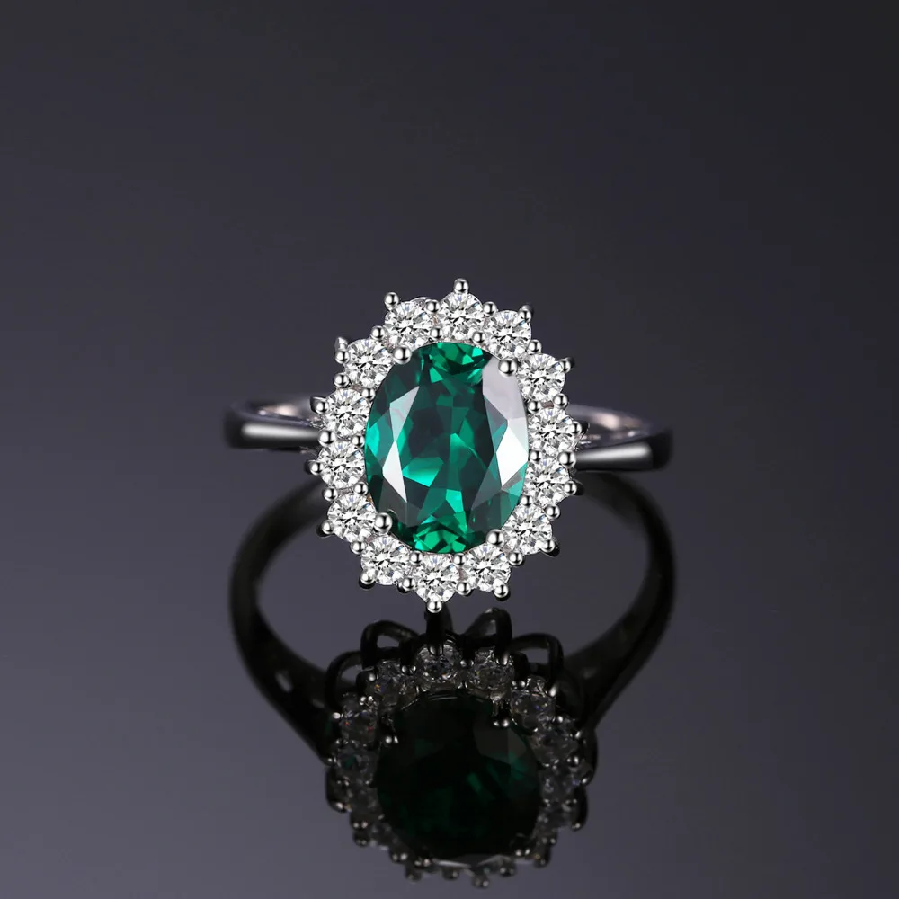 Кольцо обручальное женское из серебра 925 пробы с имитацией зеленого изумруда