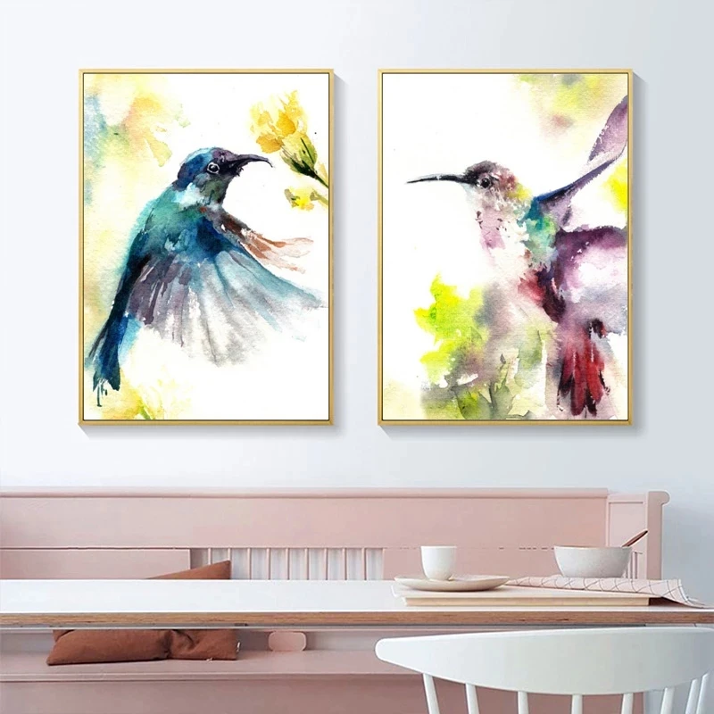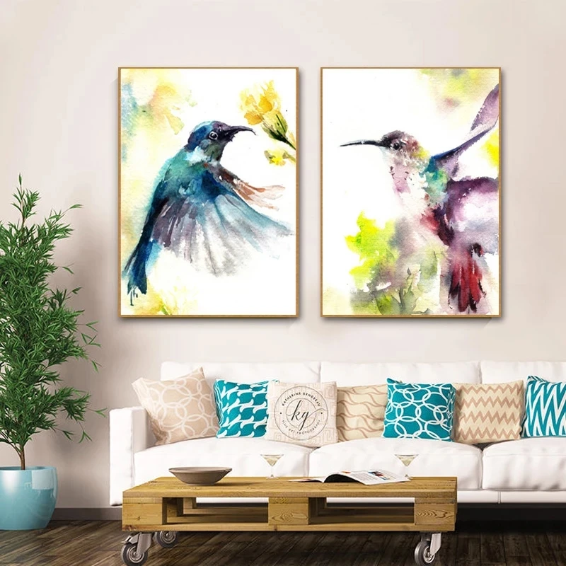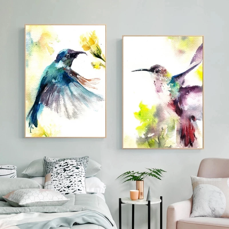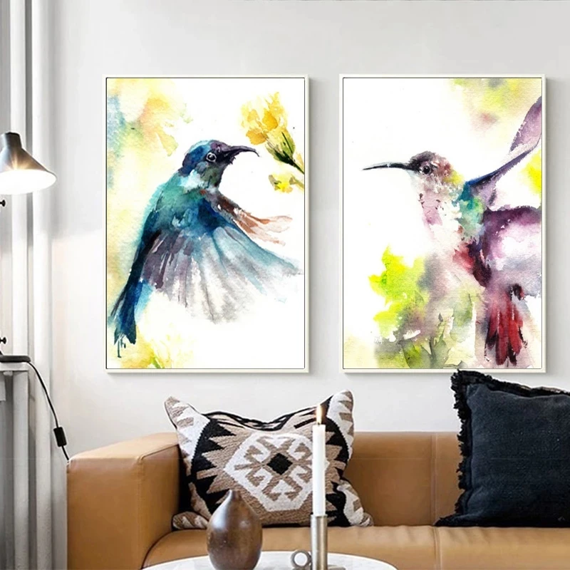 Фотообои с акварелью и колибри для украшения гостиной и дома