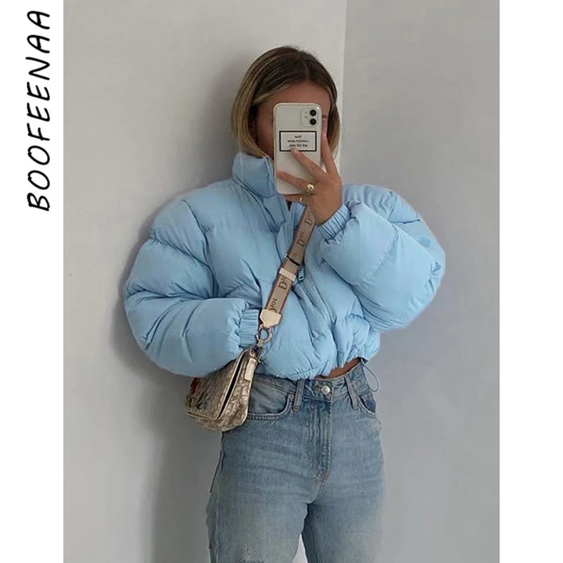 Дутая куртка BOOFEENAA на молнии, укороченная, зимняя одежда, короткая парка, цвет синий, хаки, теплая верхняя одежда, C87-GZ62