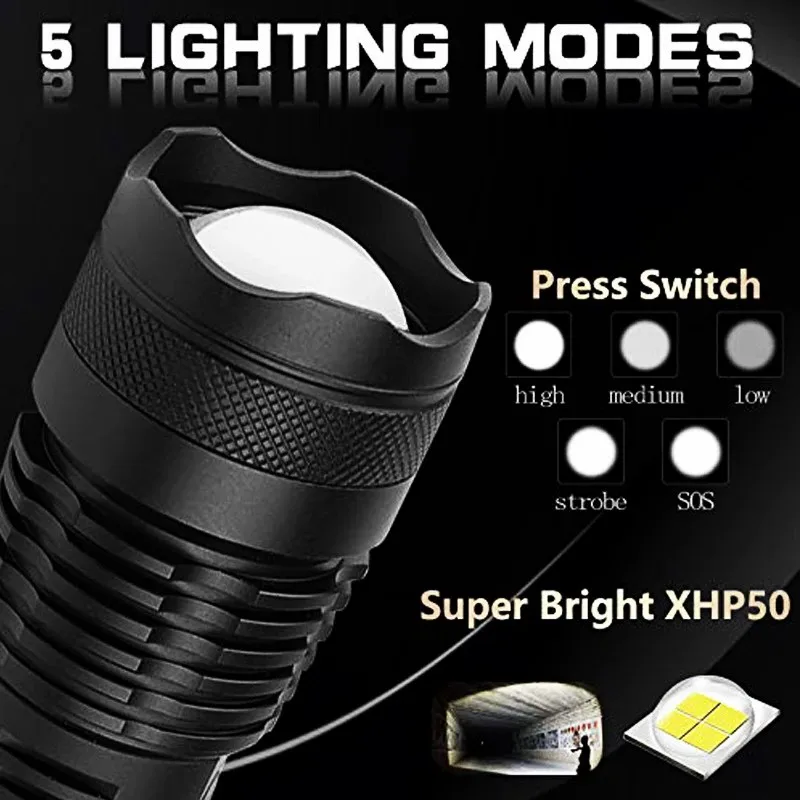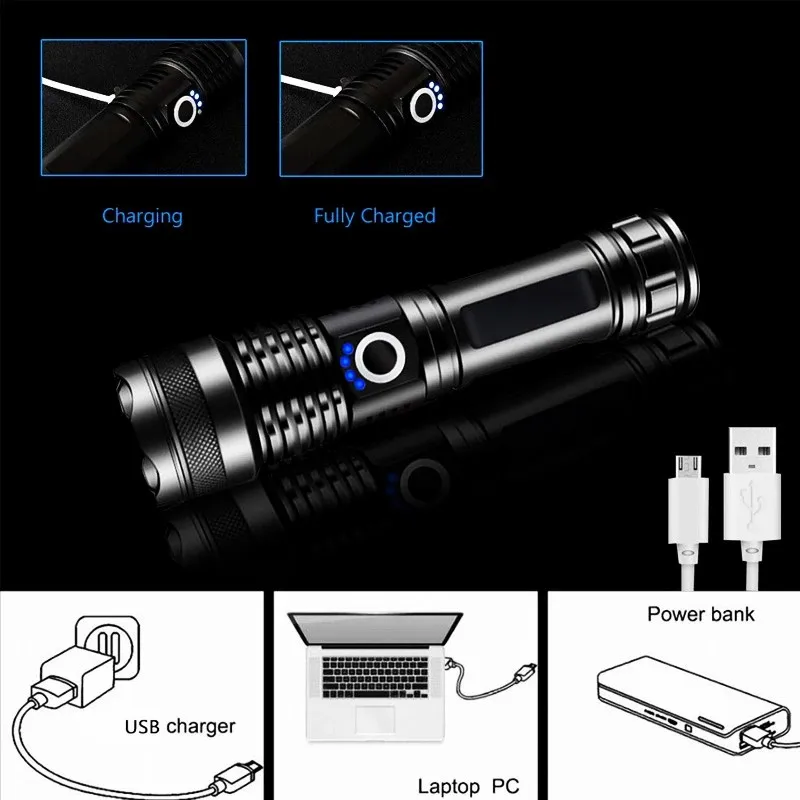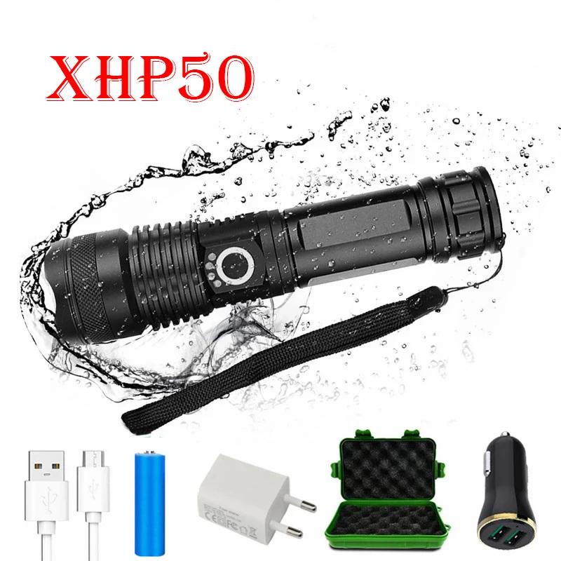 Фонарик Z20 XHP50, светодиодный, перезаряжаемый, водонепроницаемый, с увеличением 18650 люменов, USB