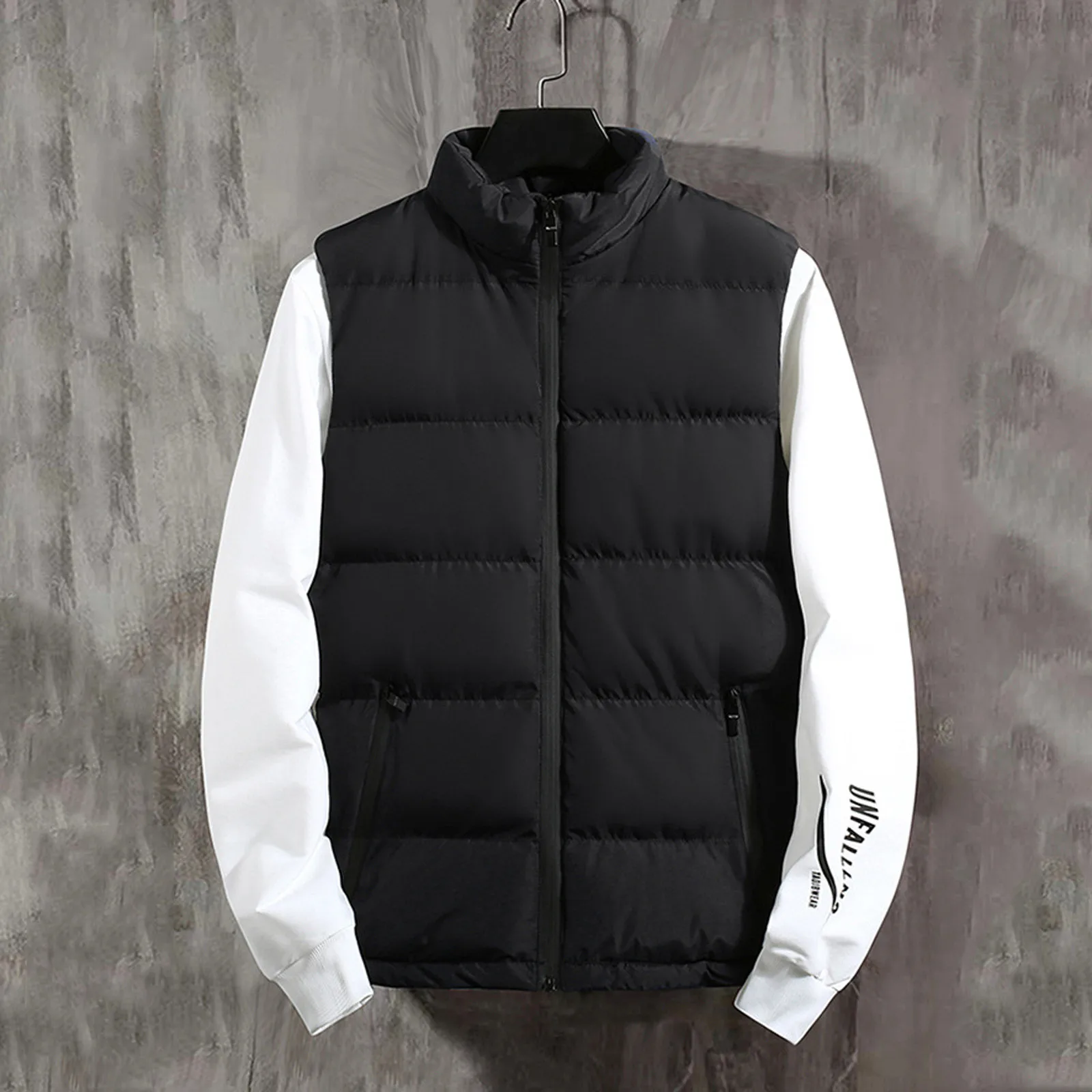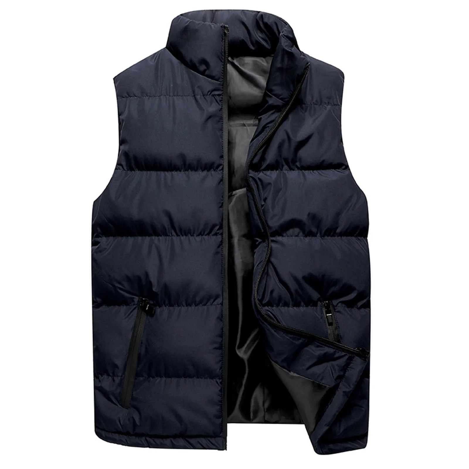 Мужской простой теплый пуховой жилет с воротником-стойкой, осенне-з...