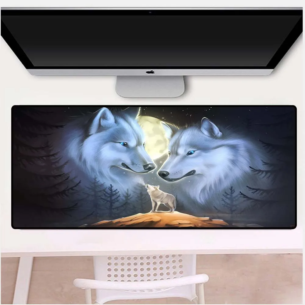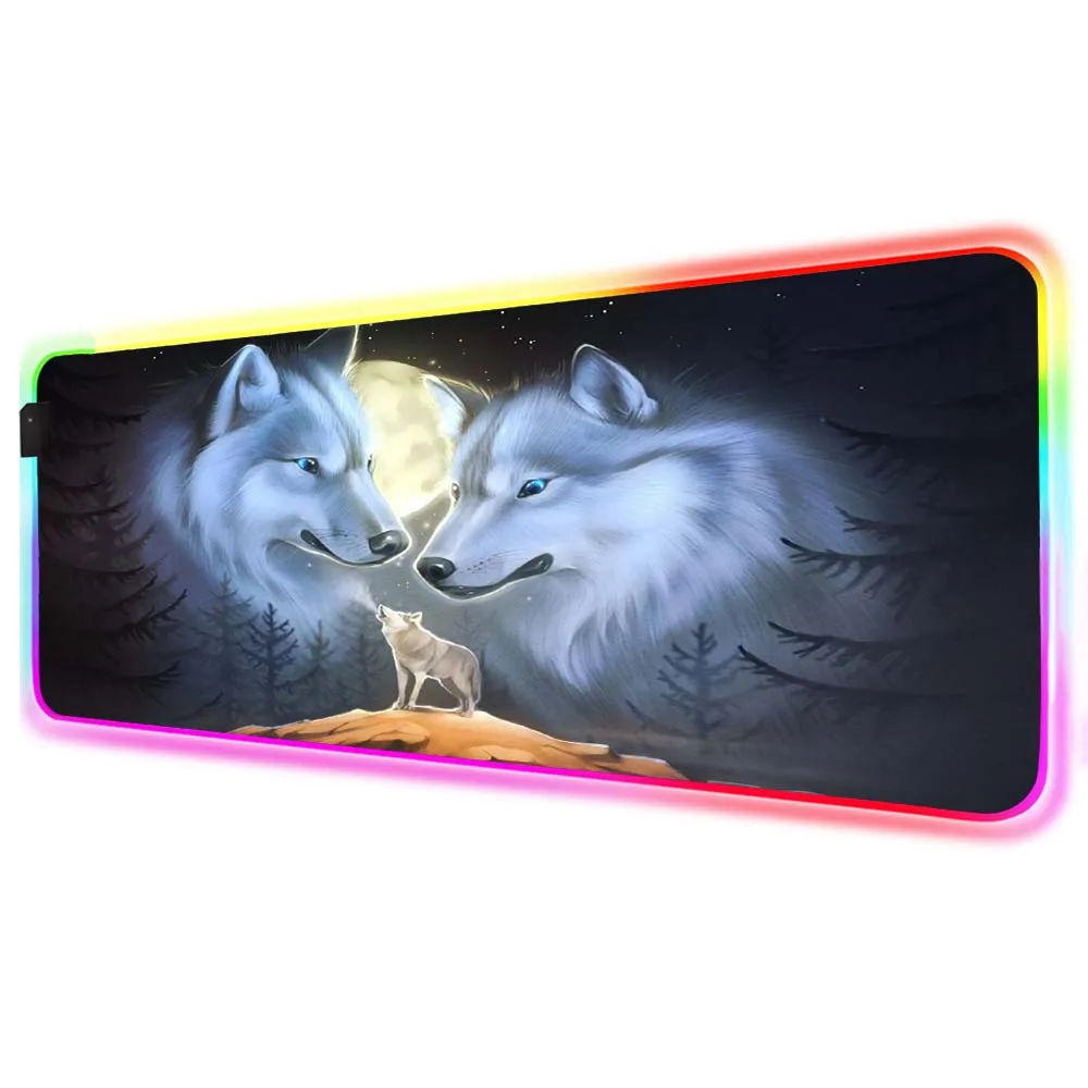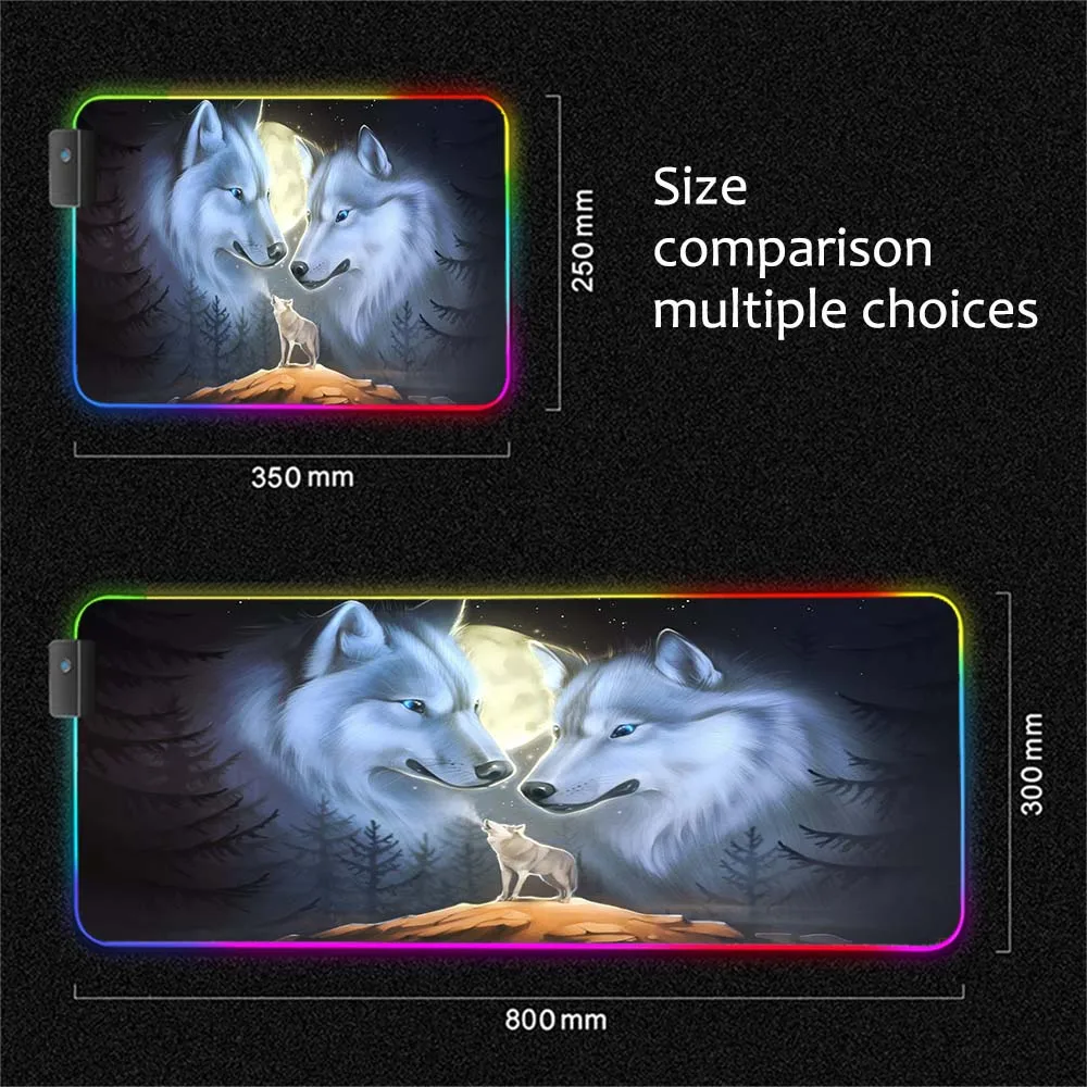 Два волка голова фантазия RGB Коврик Для Мыши Компьютерный коврик для мыши большой коврик для мыши Настольный коврик для мыши светодиодный коврик для мыши Подсветка клавиатуры коврик для мыши