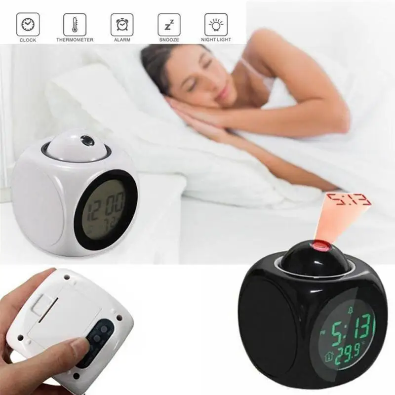Цифровой ЖК-проектор с будильником, голосовые светодиодсветодиодный часы с термометром, многофункциональные часы с термометром
