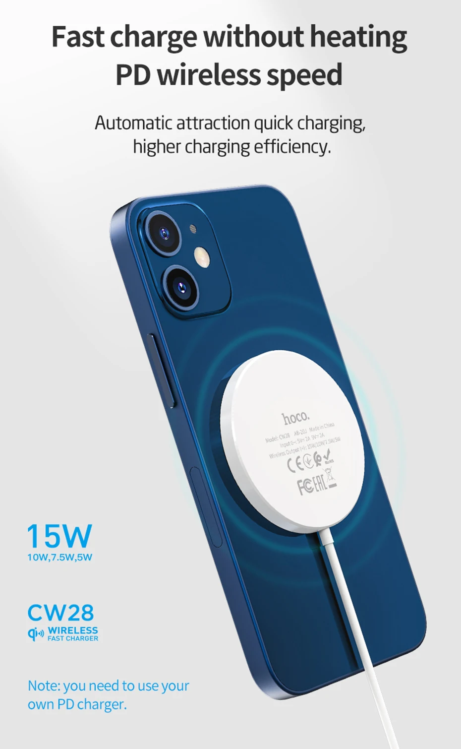 Беспроводное зарядное устройство HOCO, магнитное, 15 Вт, для iPhone 11, 12 mini, 12 Pro Max, Xiaomi mi 10