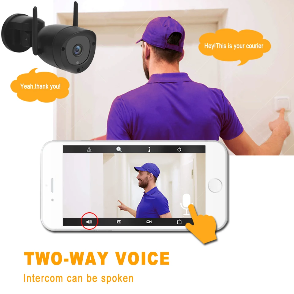 5 МП супер HD / 2 МП Full HDДвустороннее аудио управление брюки и наклонОбнаружение движения человекаИК ночного видения IP66 водонепроницаемыйTF карта