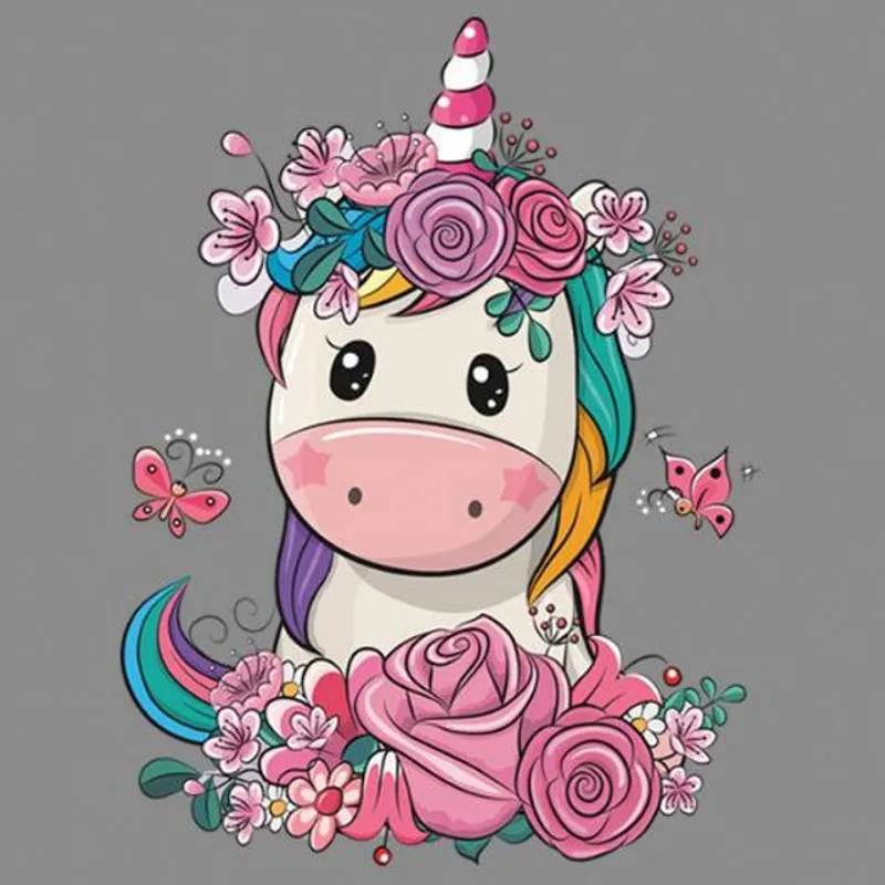 Цветы, Симпатичные единороги, животные, термонаклейки для самостоят...