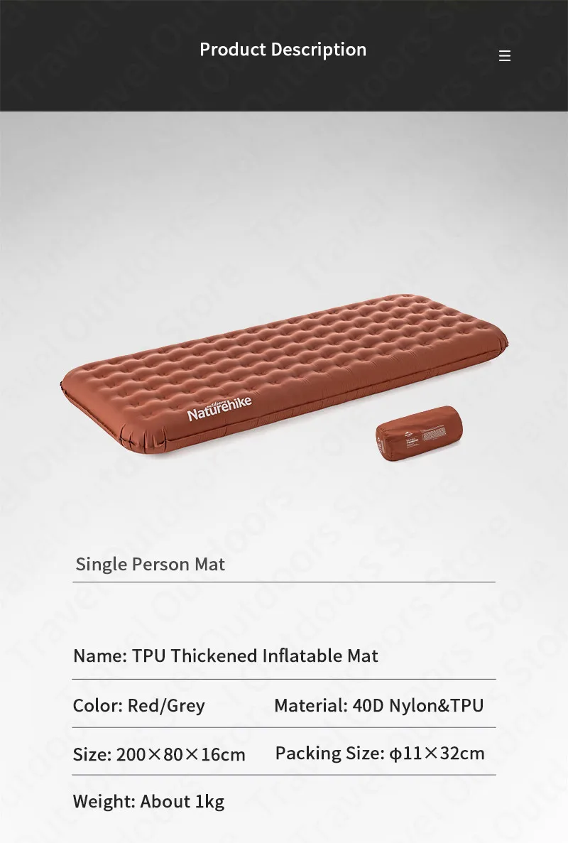 Naturehike 16 см ТПУ утолщенная одинарная двойная воздушная подушка...