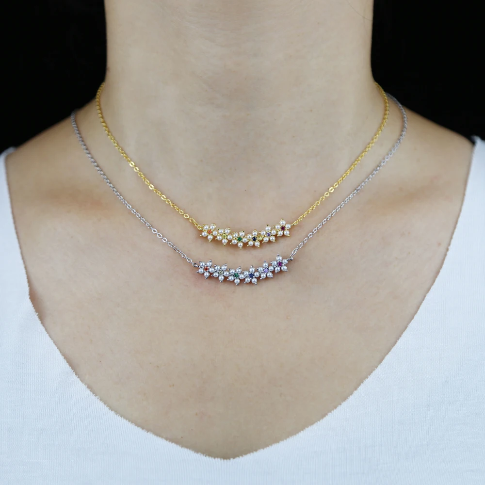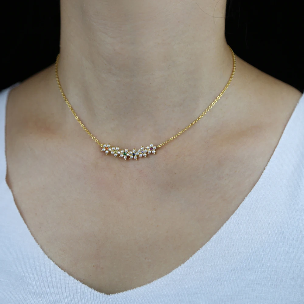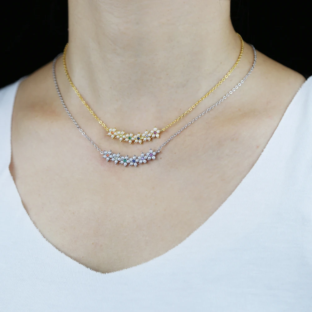 Оптовая продажа 2021 Новое поступление нежные красочные Радуга Кубический Цирконий cz жемчуг бисер цветок Шарм для женщин девушка ожерелья ювелирные изделия