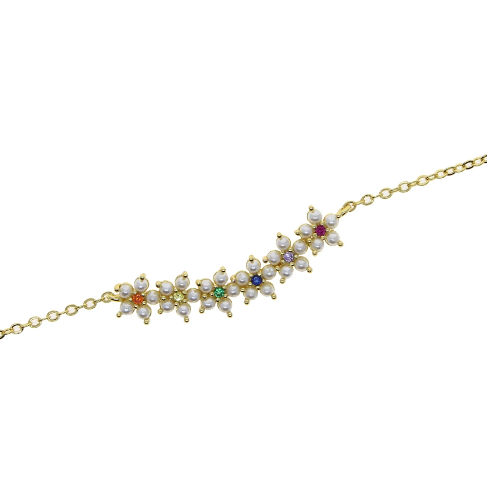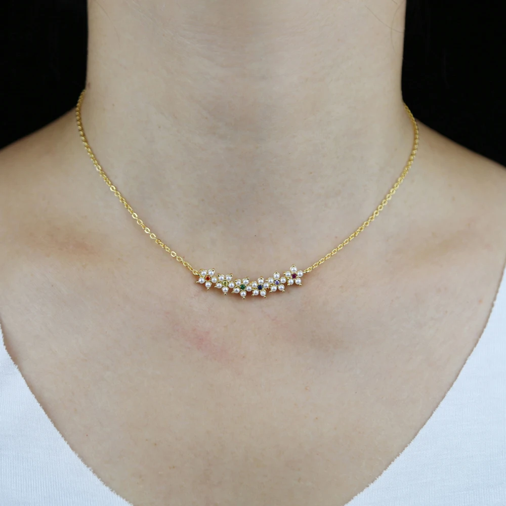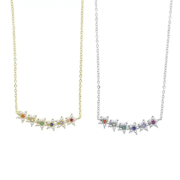 Оптовая продажа, Новое поступление 2022, Изящные Красочные радужные кубические циркониевые ожерелья с жемчужинами и бусинами в форме цветка для женщин и девочек, ювелирные изделия