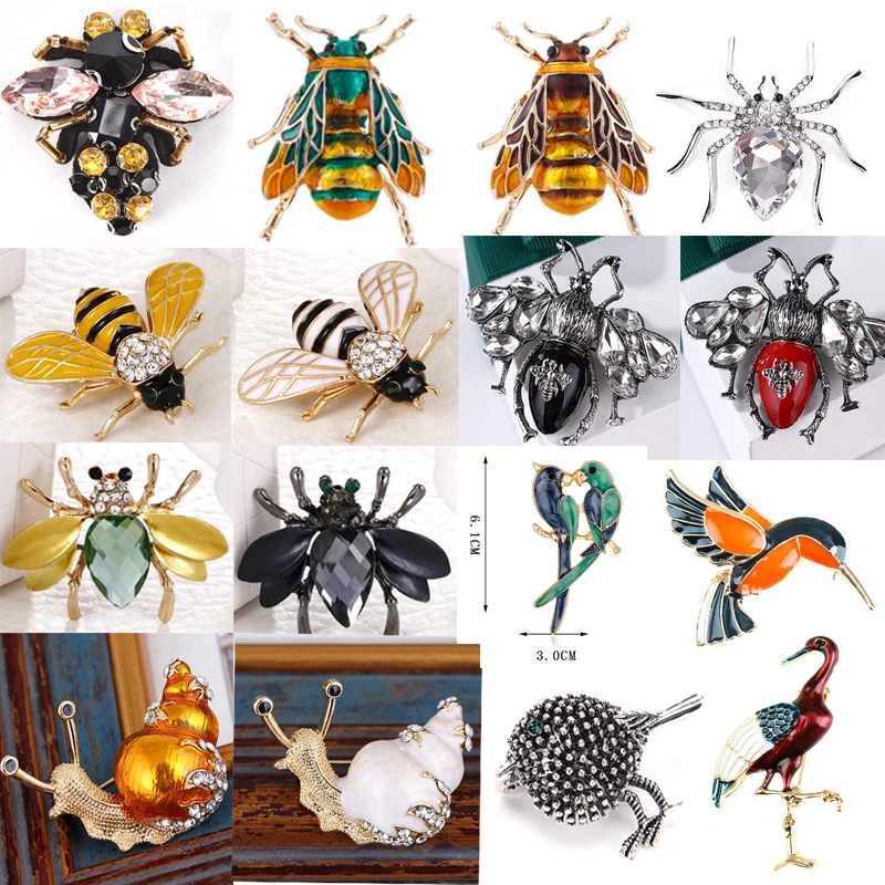 Пчела, жук, муравьи, крабы, улитка, броши с птицами, Скорпион, стразы, винтажные животные, ювелирные изделия, аксессуары, брошь