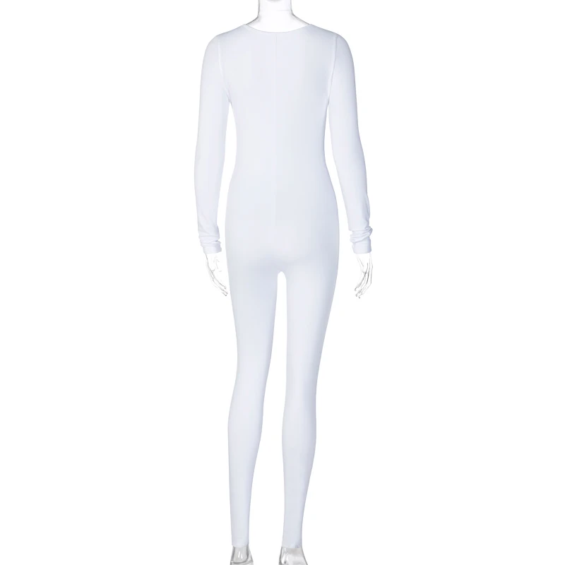Комбинезон женский обтягивающий с длинным рукавом и вырезом-лодочкой, Осень-зима 2020